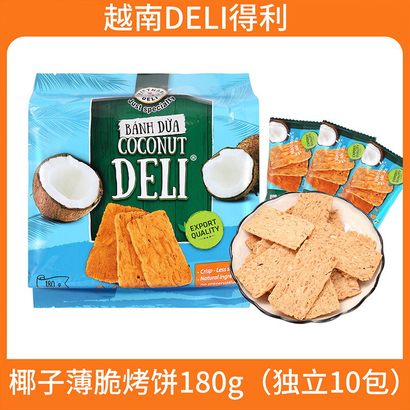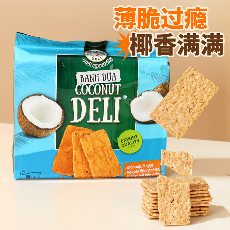 越南进口得利椰子烤饼原味薄脆饼干香烤脆薄饼休闲零食品独立包装