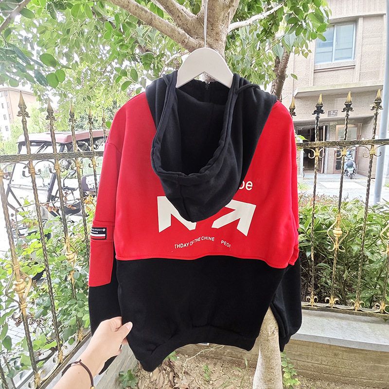 贝哆哈青少年加绒卫衣秋冬大童绒衫上衣男童连帽套头衫一体绒外套
