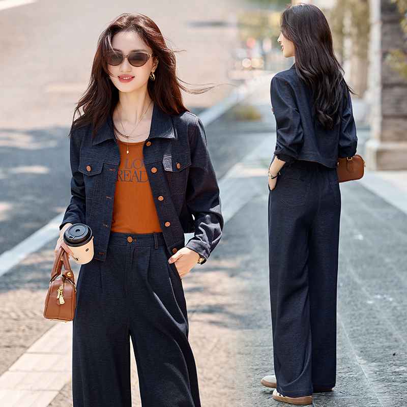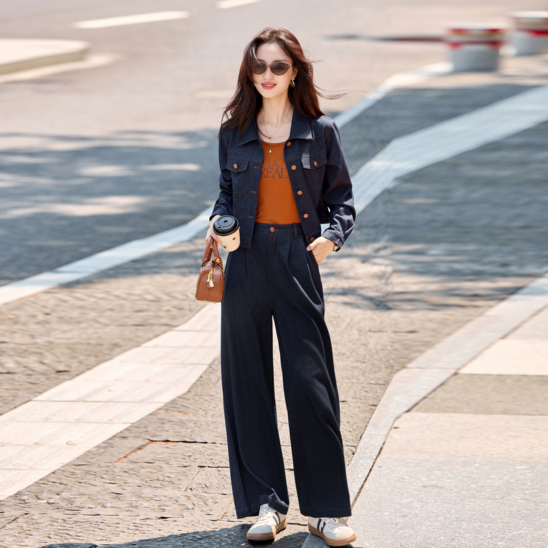 休闲时尚复古牛仔套装女2025年春秋新款炸街气质背心阔腿裤三件套