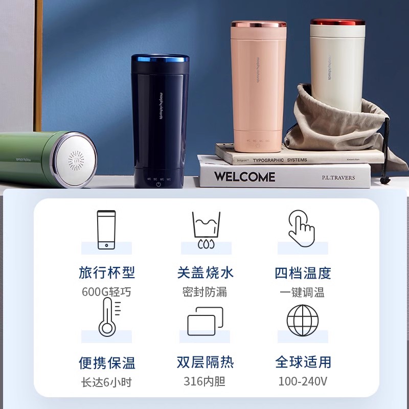 摩飞电热烧水杯家用自动保温一体养生杯便携式小型旅行加热烧水壶