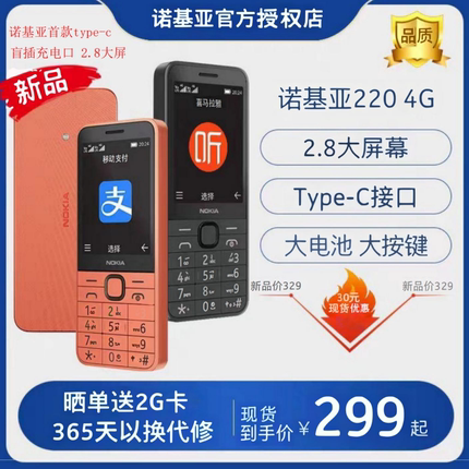 诺基亚新款2.8大屏幕4G老人手机声大字TYPE-C充电口不分正反面超长待机非智能可出示付款码移动支付学生手机