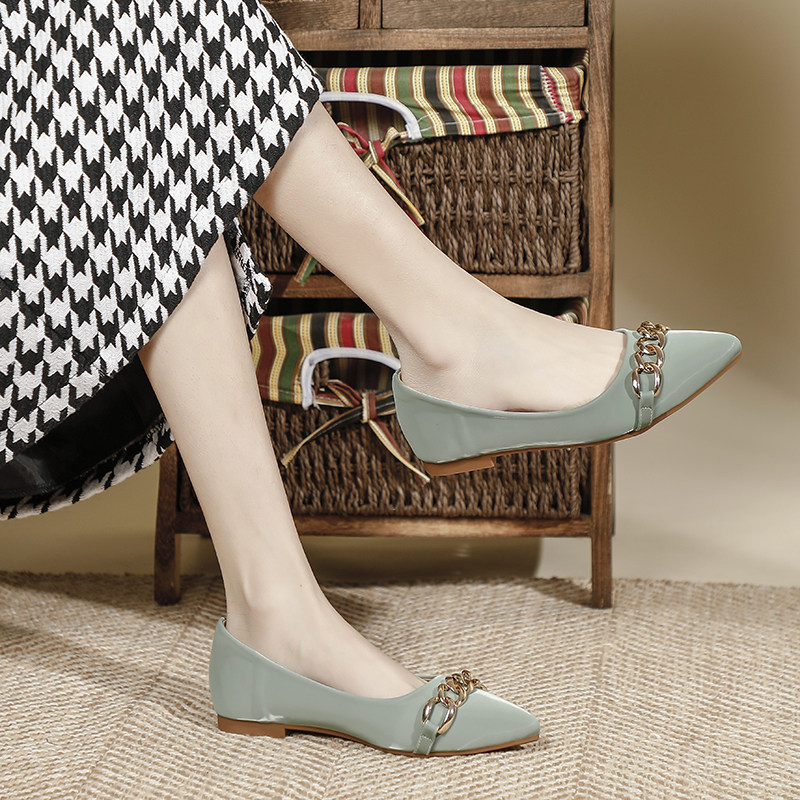 单鞋女2025年韩版春季文艺尖头气质妈妈鞋热风百搭舒适漆皮豆豆鞋