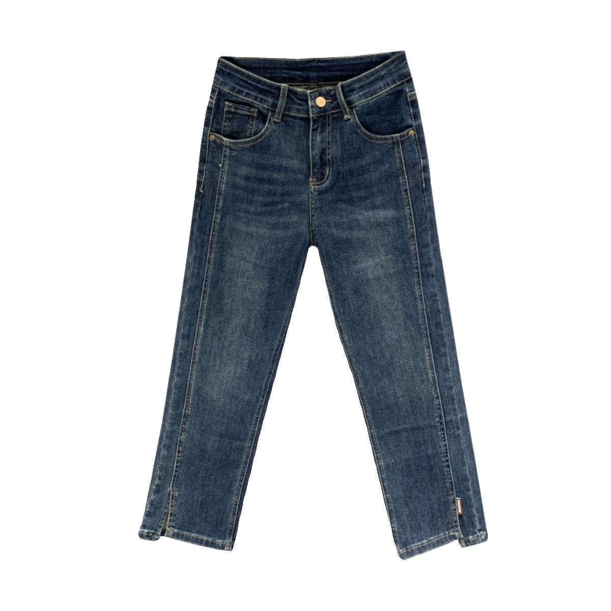 直筒裤八分裤牛仔布2023秋季开叉