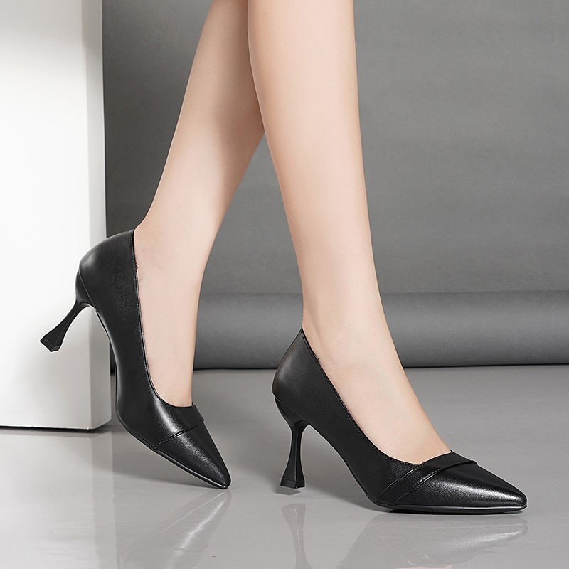 空姐礼仪高跟鞋女细跟单鞋尖头面试工作鞋正装黑色不累脚中跟皮鞋