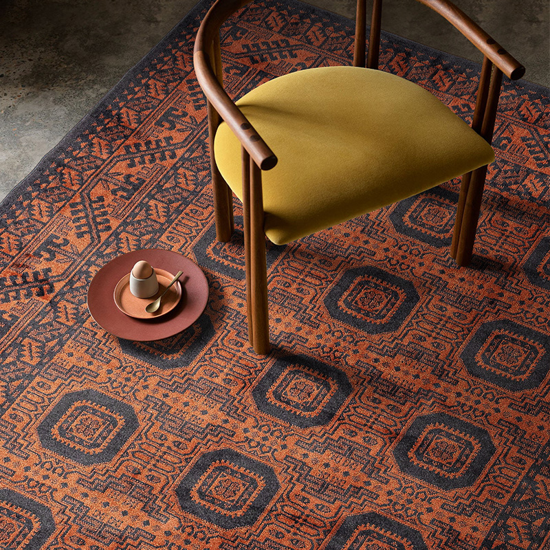 视觉味道 中古法式南洋风客厅地毯深色焦糖色复古波斯卧室床边毯