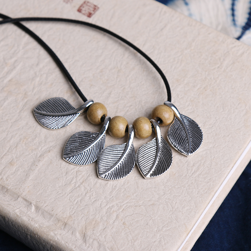 民族风叶子毛衣链女长款文艺吊坠 复古简约百搭项链配.饰饰品挂件