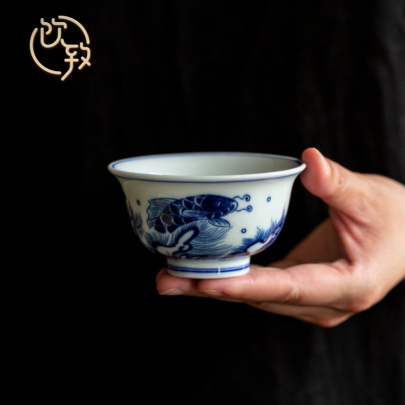 饮致永乐青花压手杯主人杯单杯釉下彩茶杯高档陶瓷品茗杯个人专用