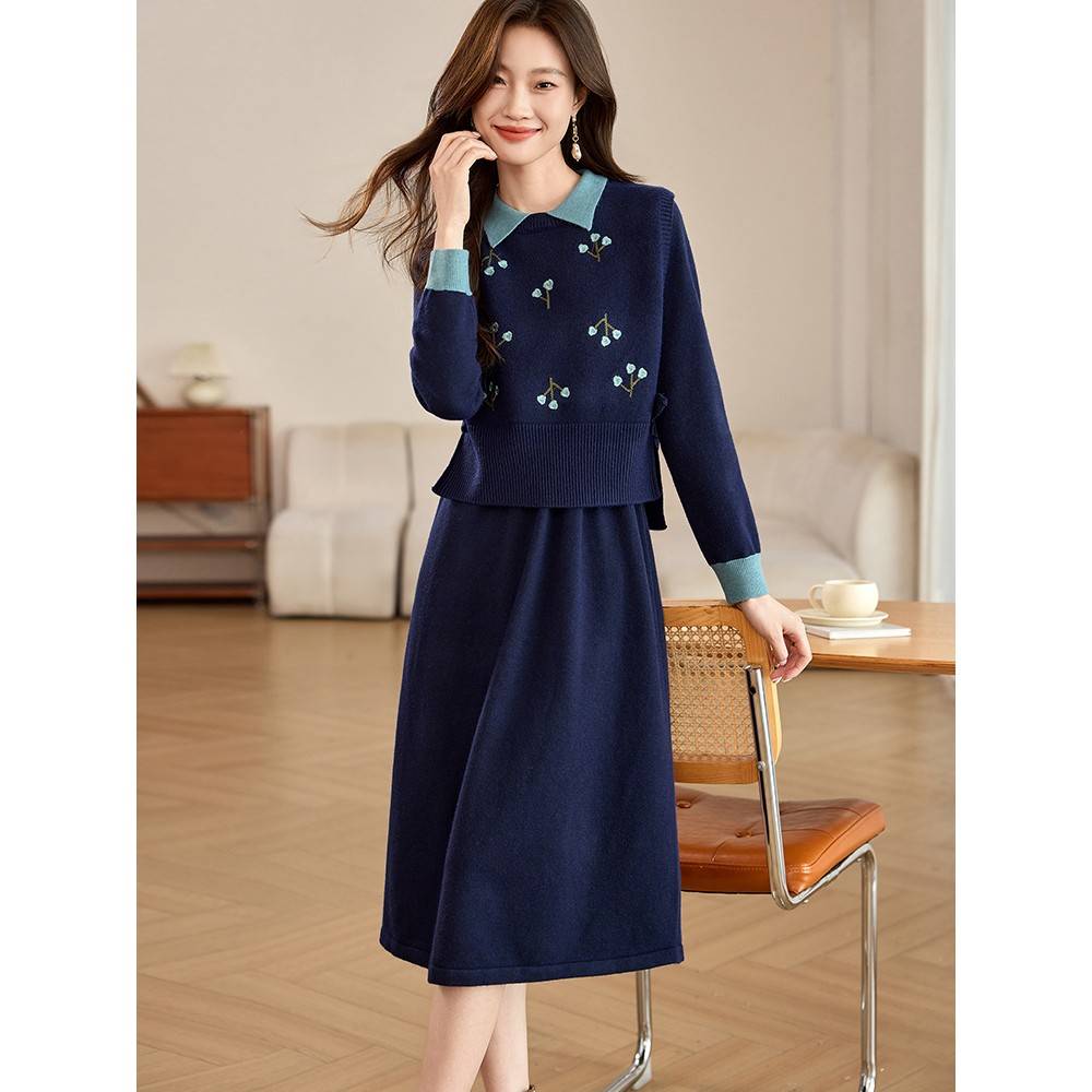 休闲时尚套装裙子女秋冬季2025新款针织打底羊毛衫毛衣气质两件套