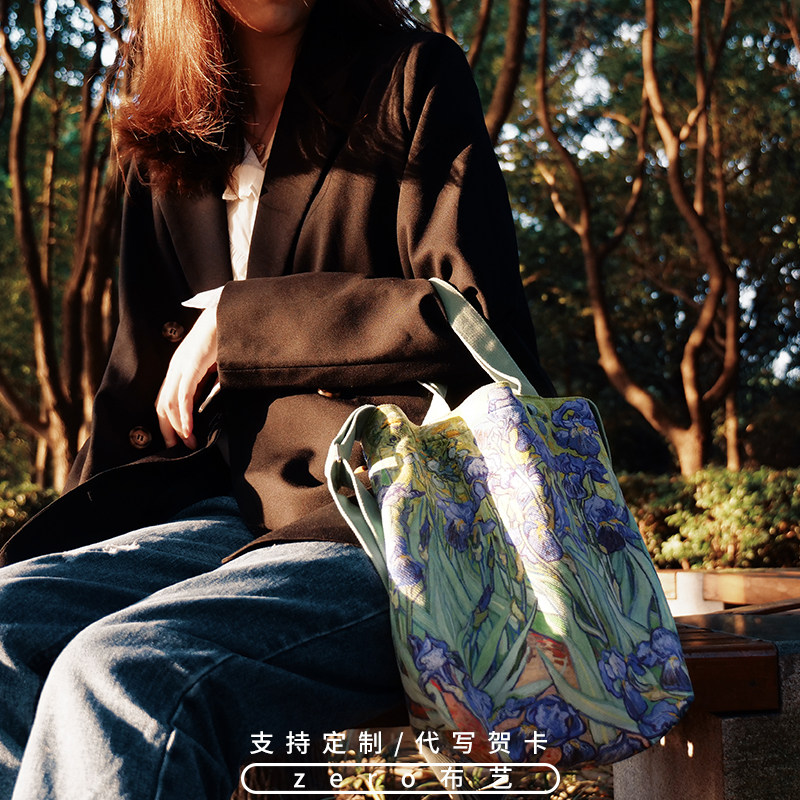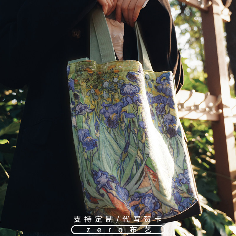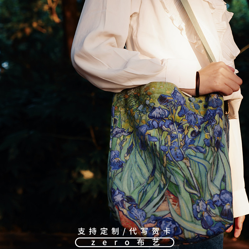 Irises梵高鸢尾花配裙子的包包女斜挎布包春夏季文艺单肩包手提包