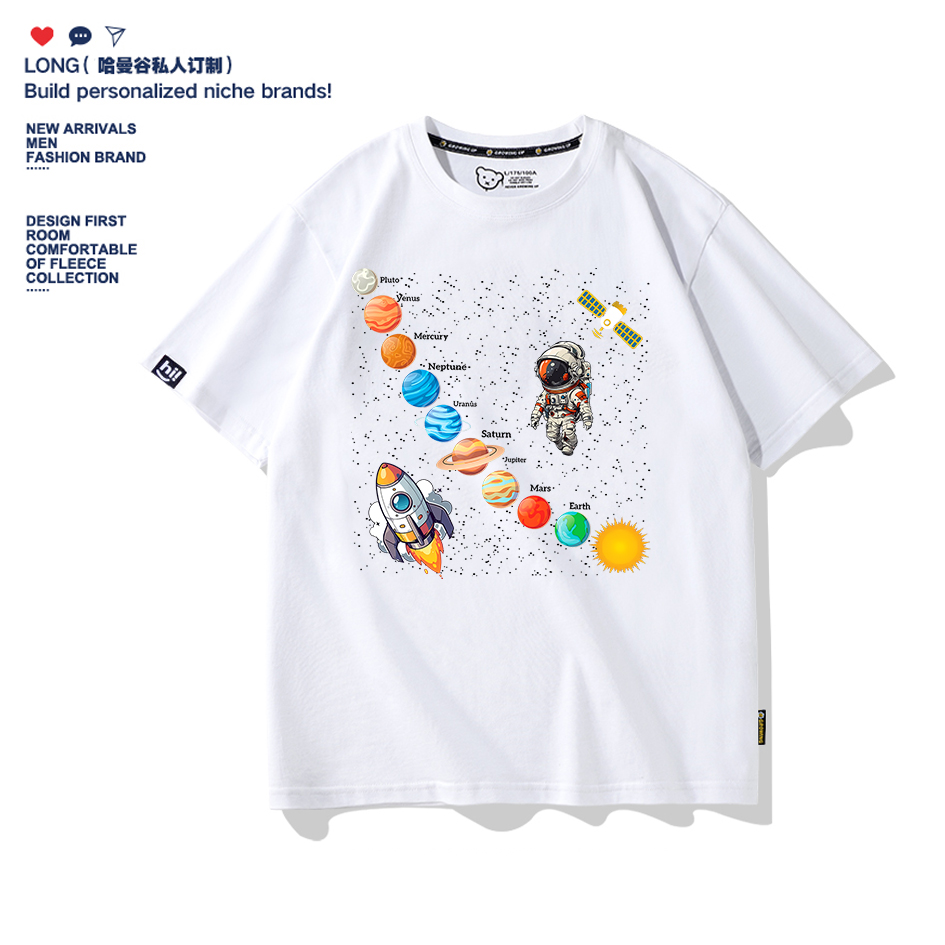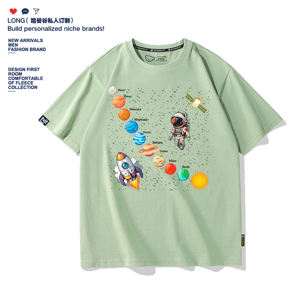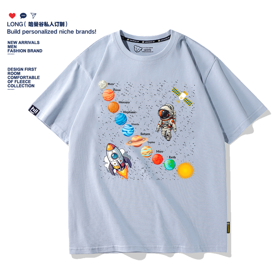 太阳系宇航员太空夏季短袖T恤纯棉男女学生青少年童装半袖定制潮