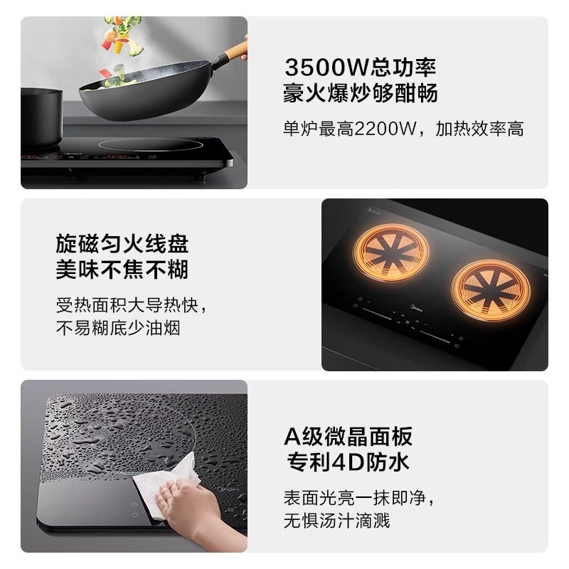 美的双灶电磁灶3500W大功率家用双头灶移动式电灶台电磁炉正品
