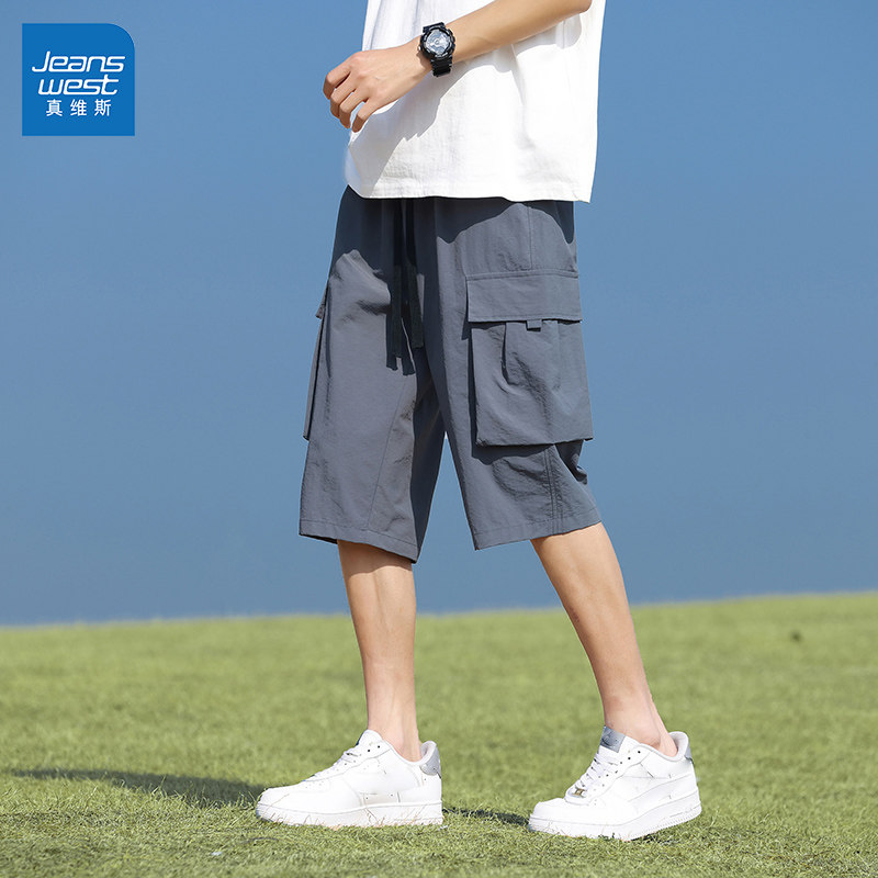 GL真维斯七分裤男夏季薄款大口袋宽松直筒冰丝休闲裤日常户外短裤