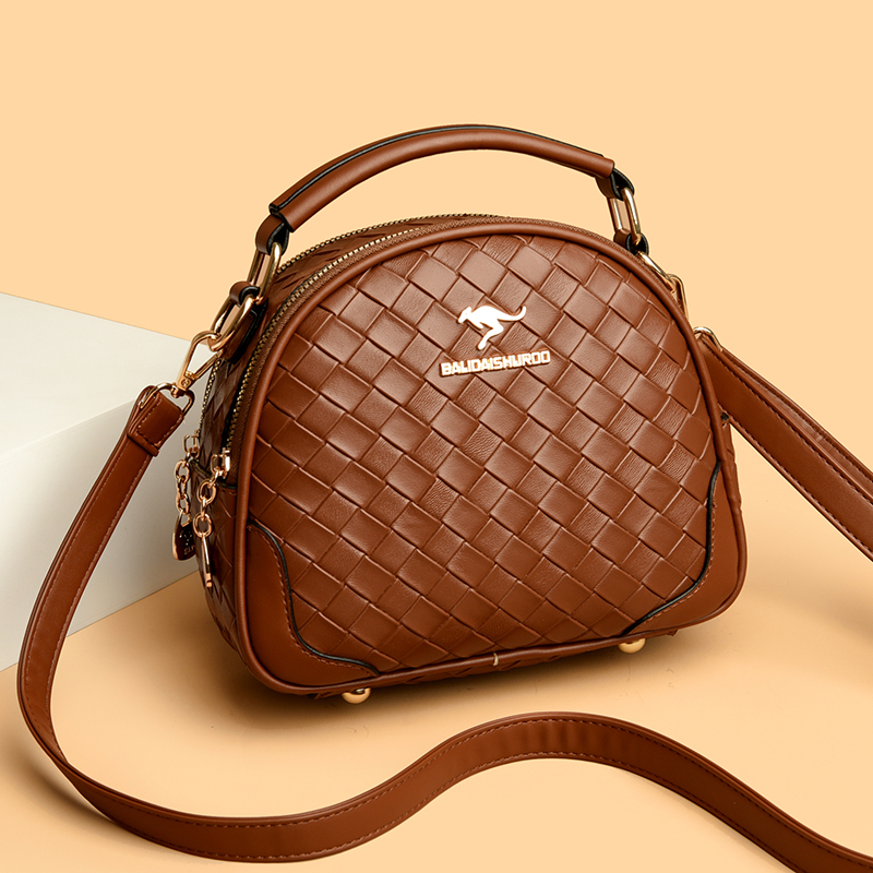 品牌真皮中年女士斜跨包多层小圆包女2024新款软皮手提单肩手机包