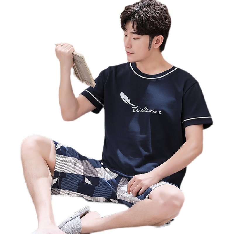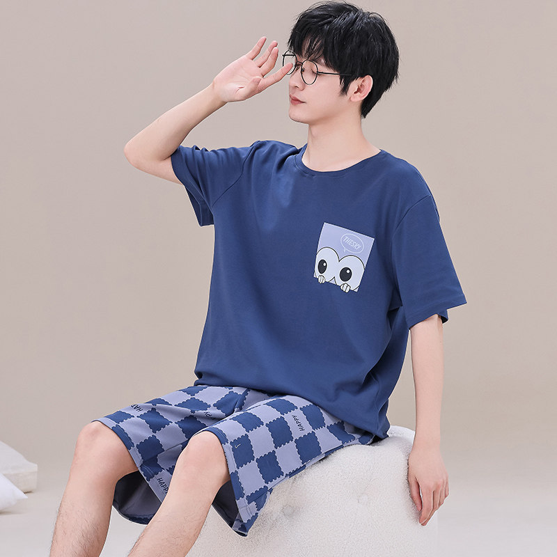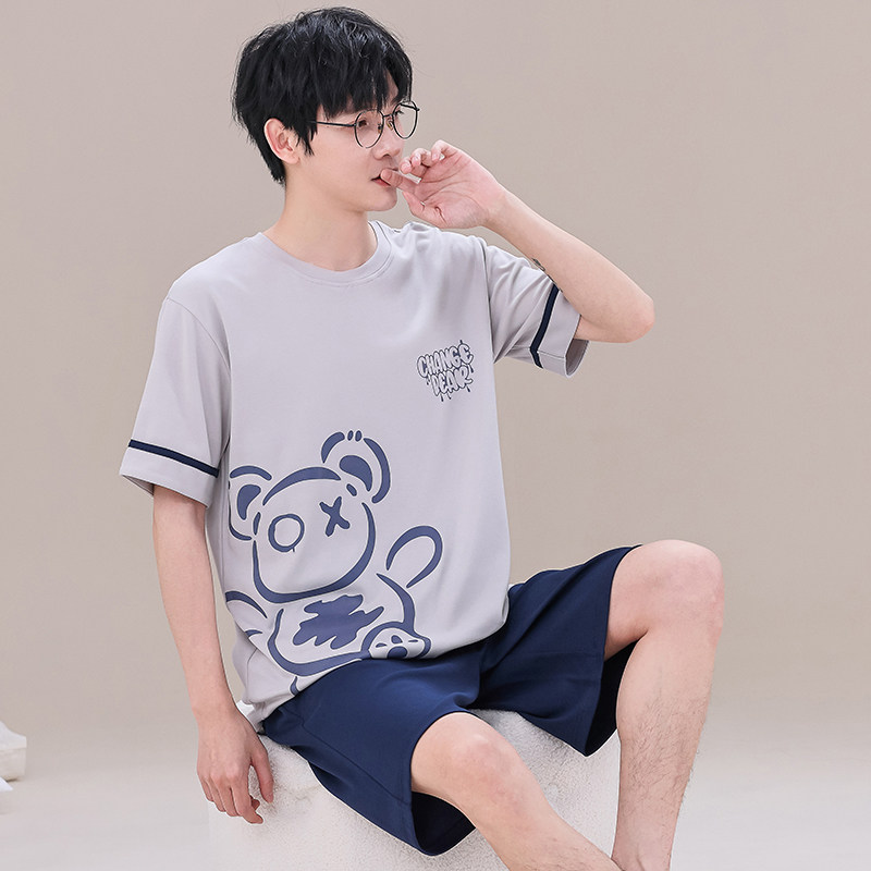 男士居家睡衣夏纯棉短袖短裤青少年夏天薄款春秋季休闲家居服套装