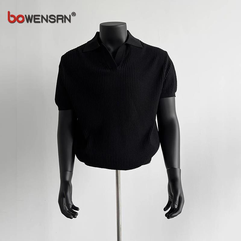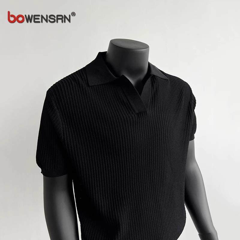 黑色老钱风针织polo衫男士短袖t恤2025新款夏季成熟稳重半袖男款