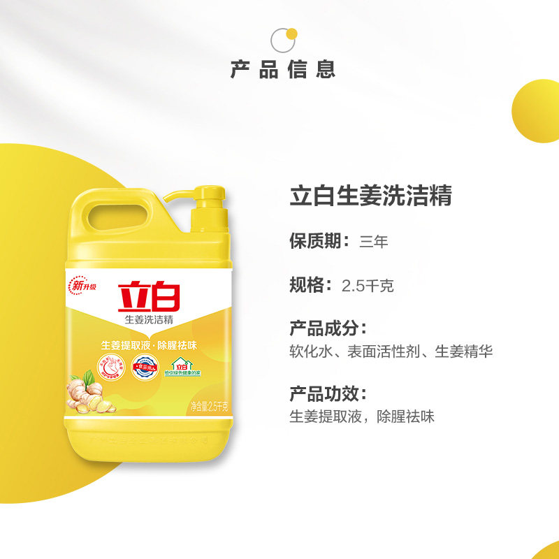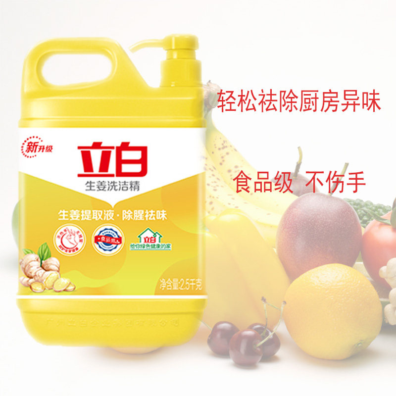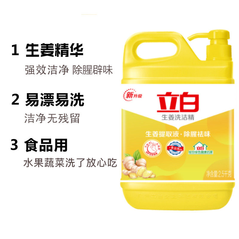 立白生姜金桔洗洁精按压泵压大桶装不伤手食品用洗涤剂洗碗剂餐饮