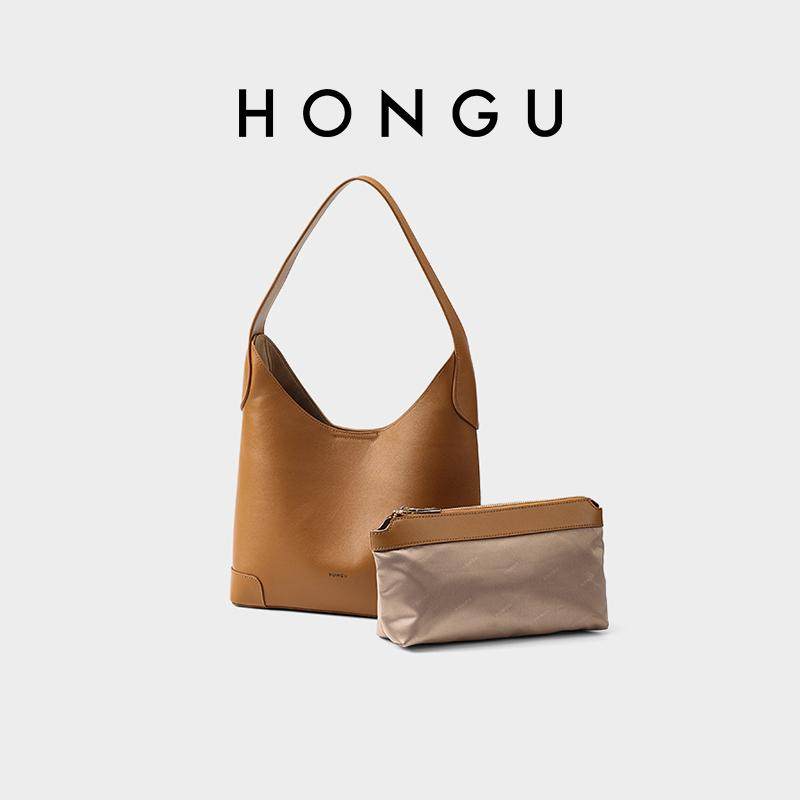 红谷女包头层牛皮大容量水桶包气质单肩包手提包