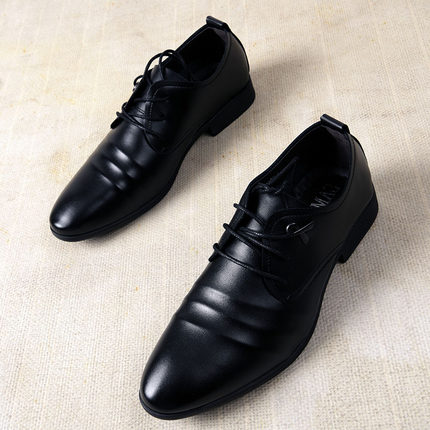 尖头皮鞋男冬季2025正装商务黑色青年学生西装英伦韩版休闲鞋子男