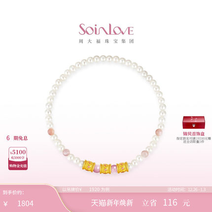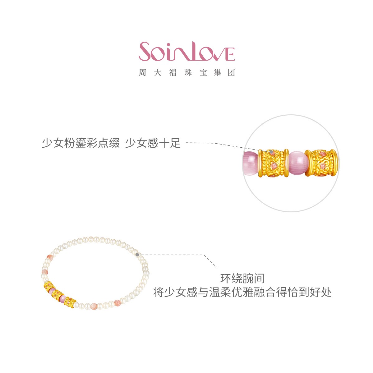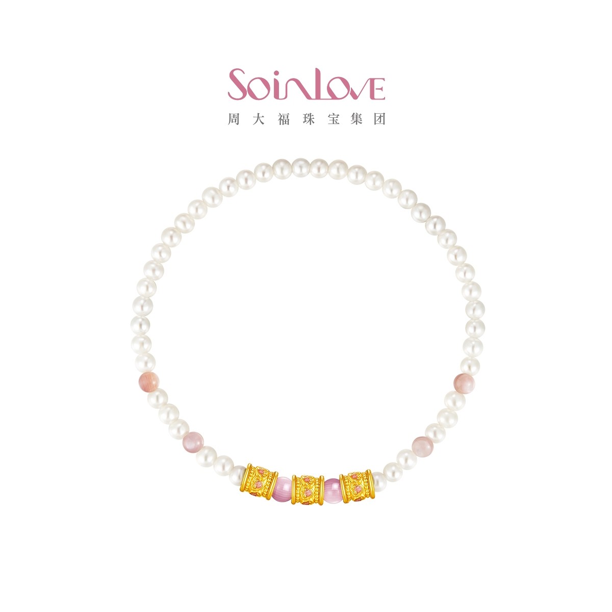周大福SOINLOVE宝藏女孩明月珠黄金珍珠贝壳手链圣诞礼物