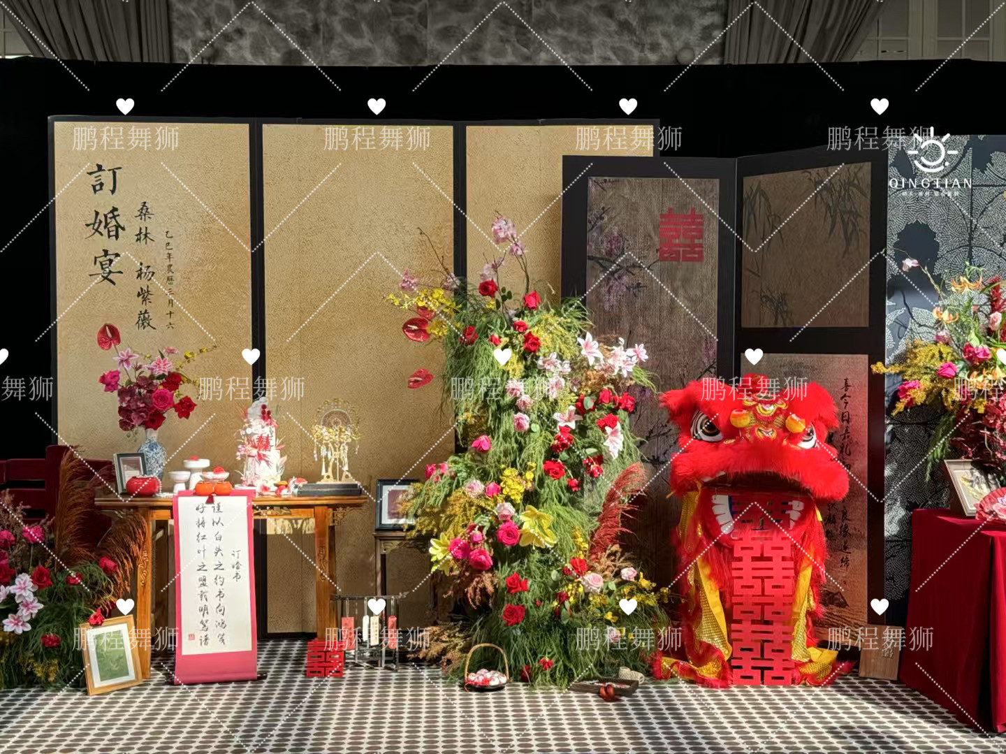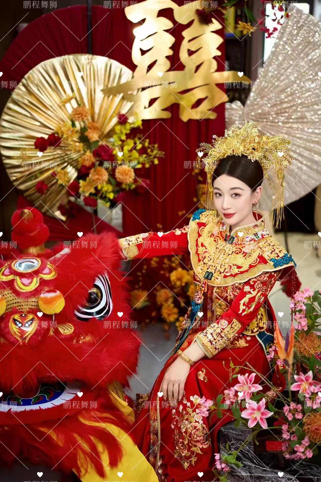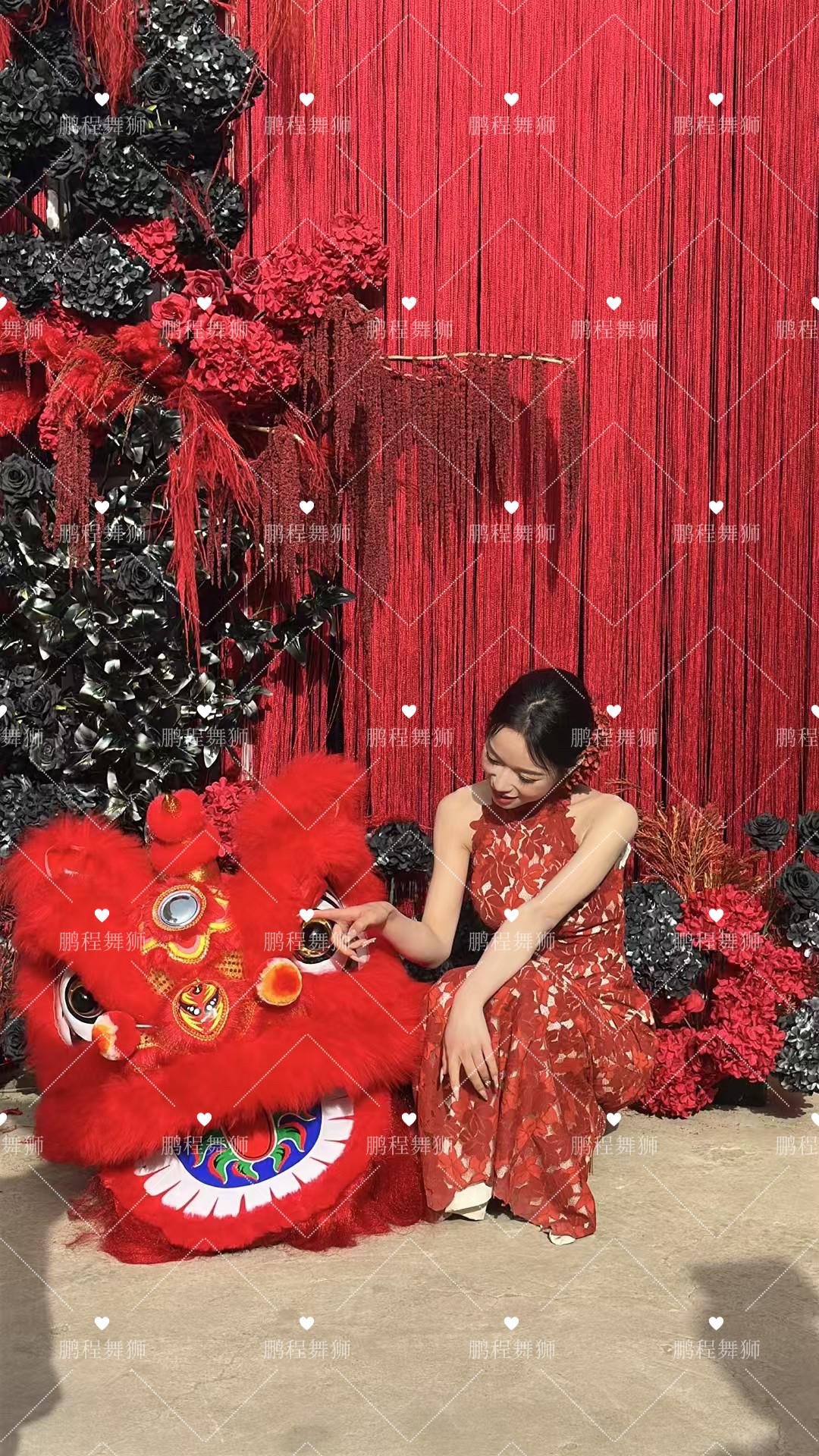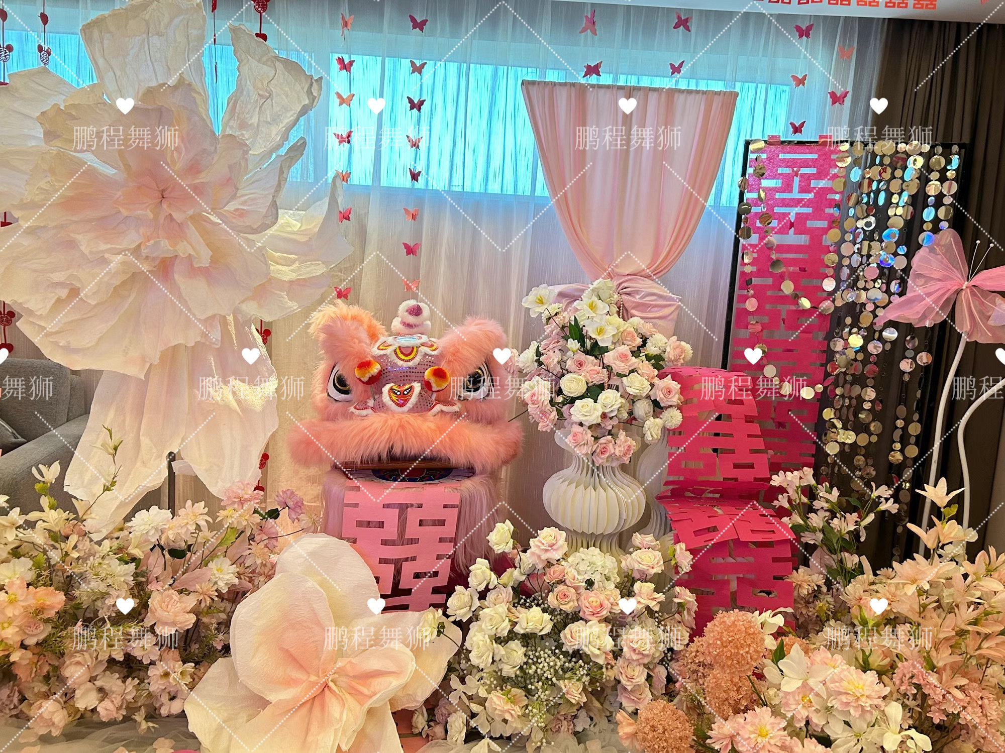 粉色醒狮结婚装饰拍照专用澳洲羊毛舞狮布置狮子表演道具狮子头