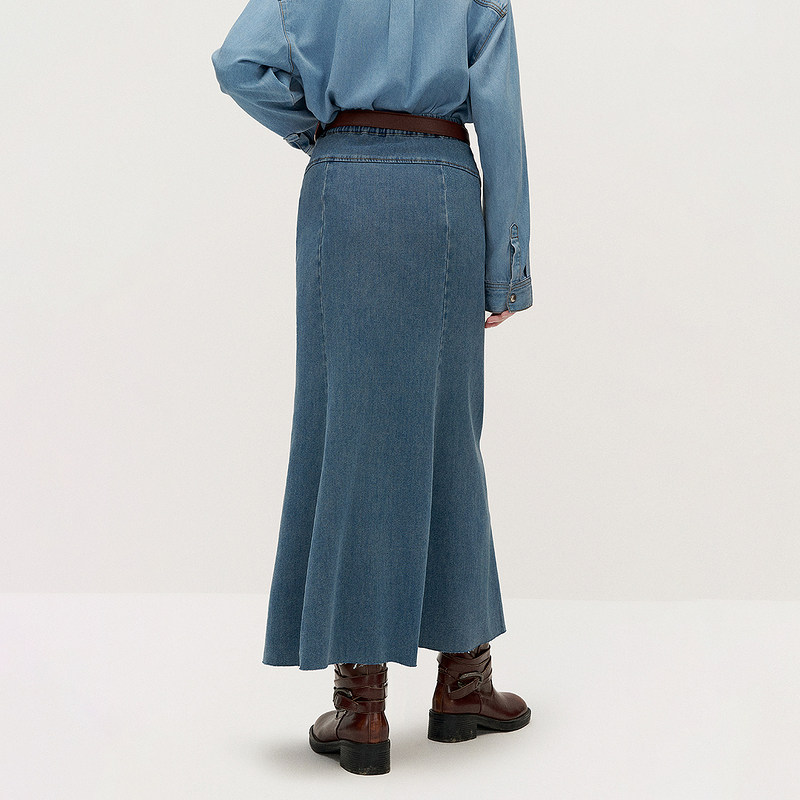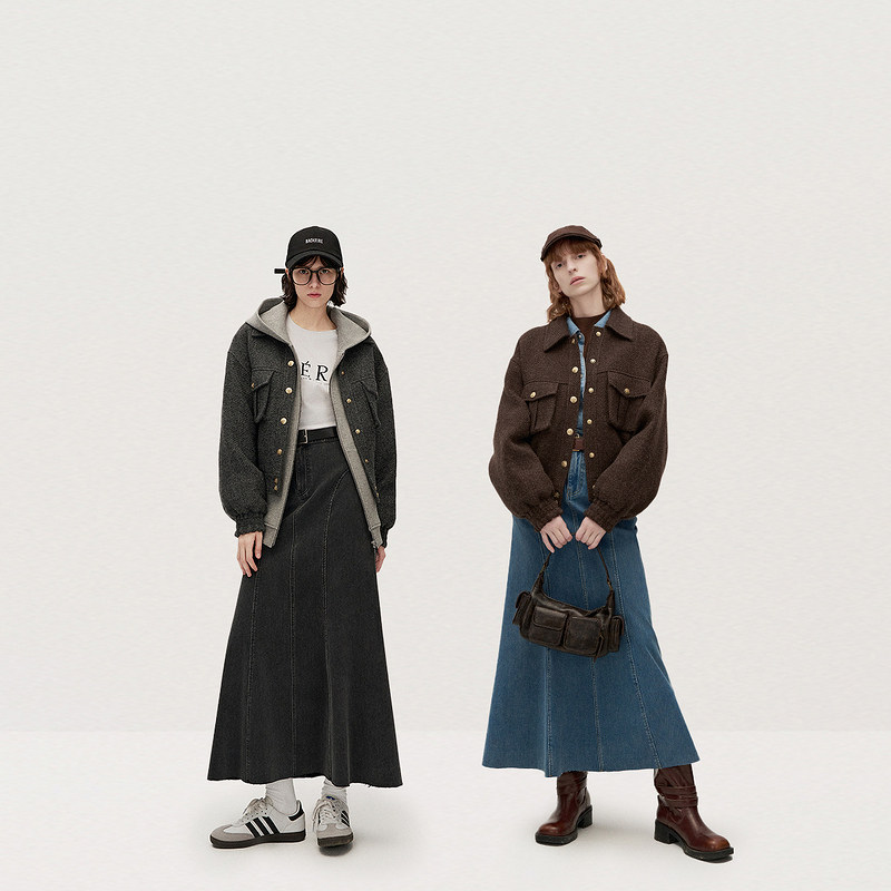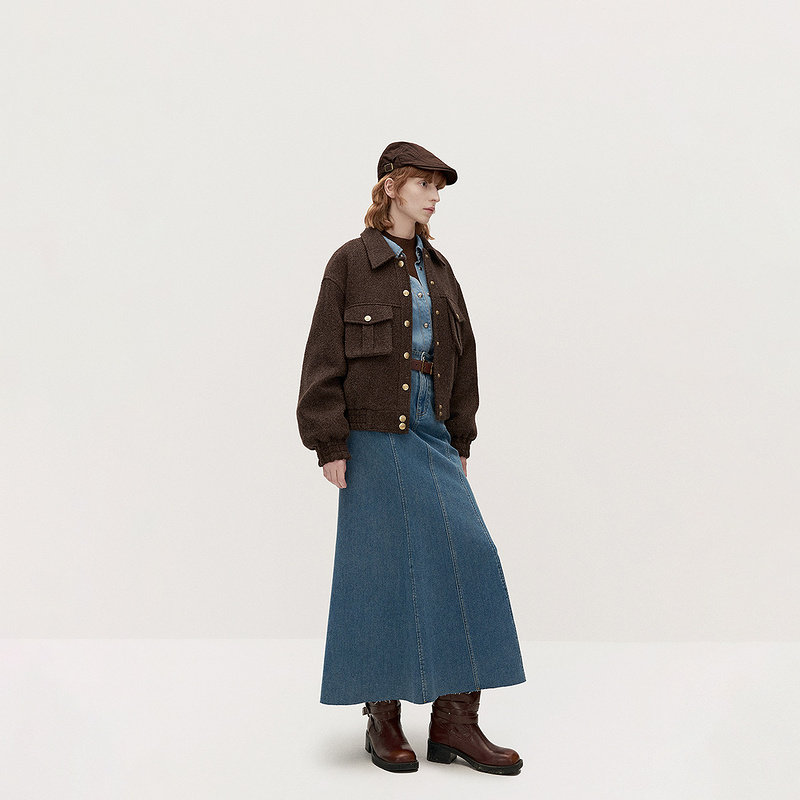 ochirly欧时力立体廓形加绒牛仔半身裙a字长裙伞裙2025秋冬新款
