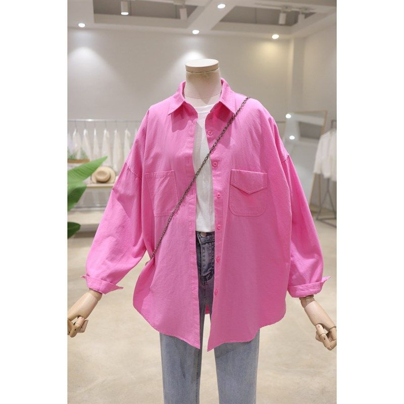 宽松大板型2024春装宽松显瘦中长款棉质长袖衬衫女百搭衬衣