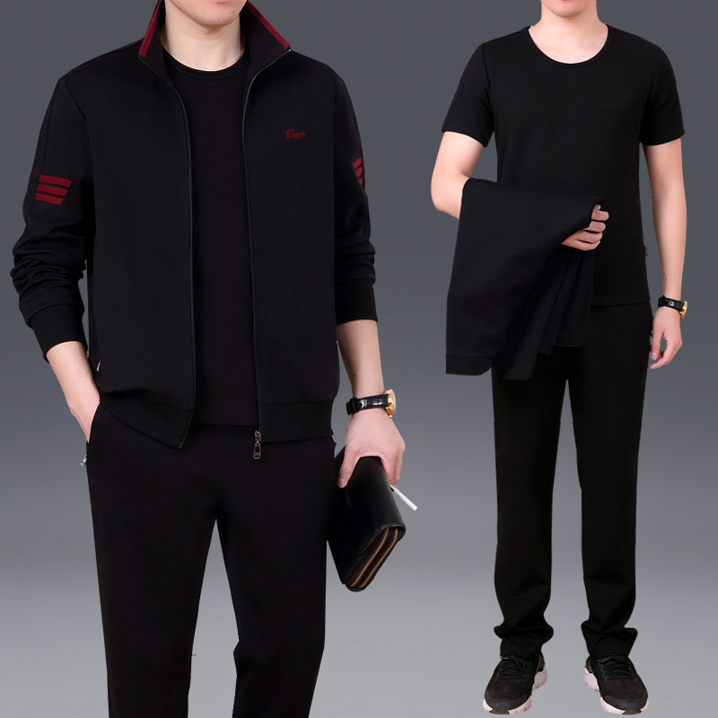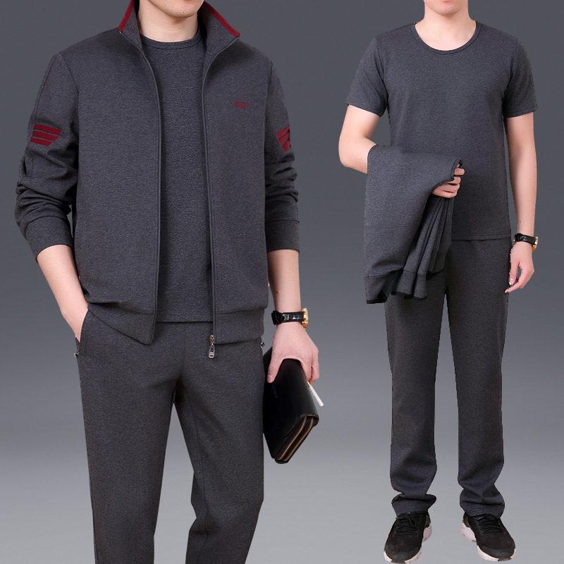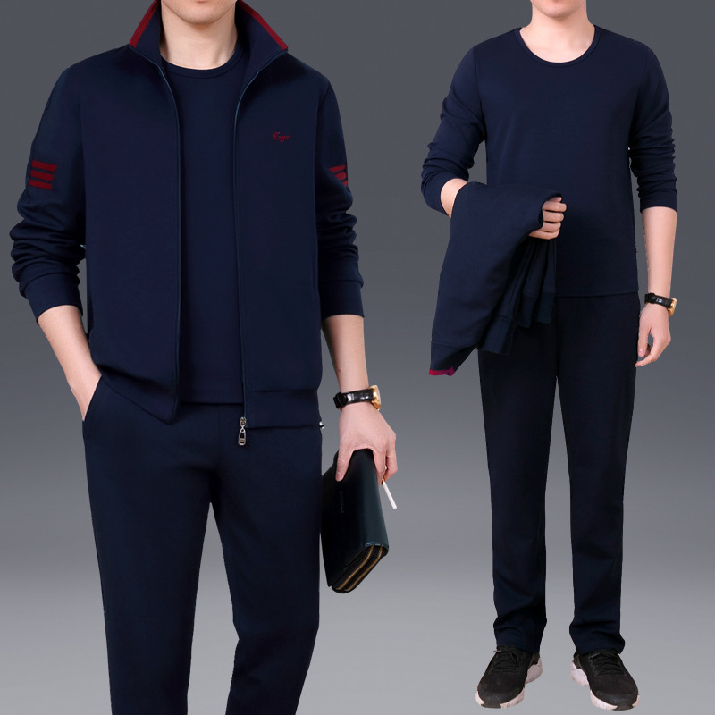 中老年运动服套装男2023春秋休闲套装爸爸装大码长袖 运动套装