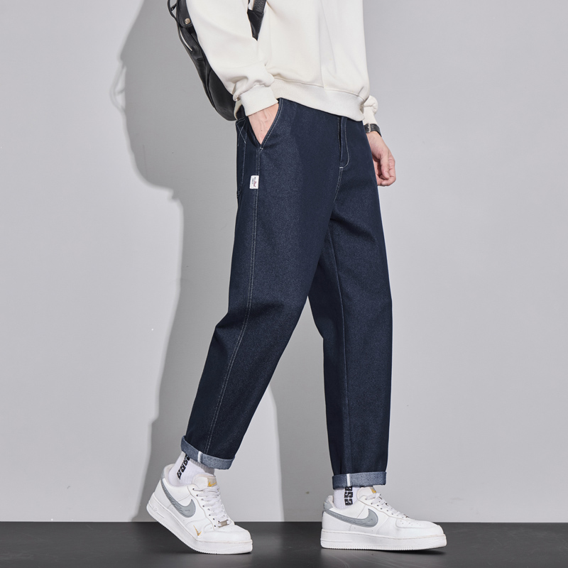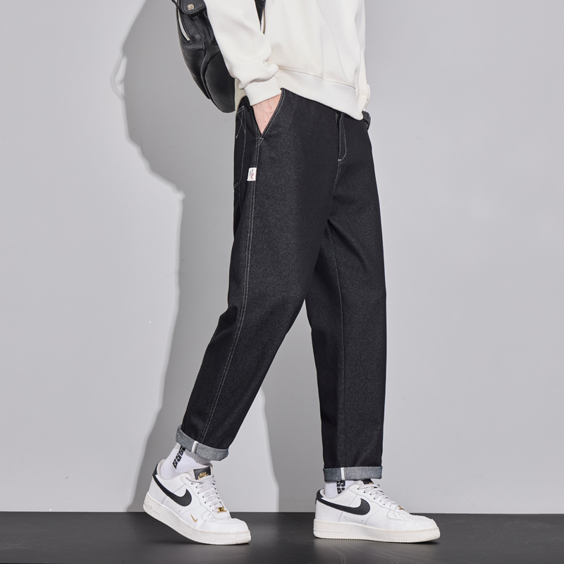 秋冬款原牛不褪色锥形牛仔裤男宽松百搭休闲半松紧腰裤子