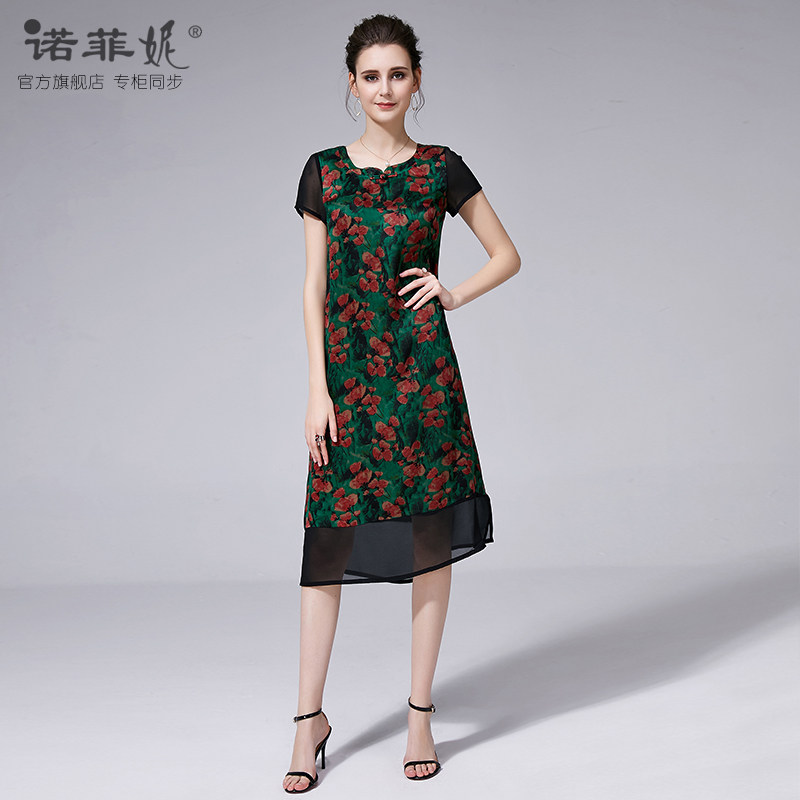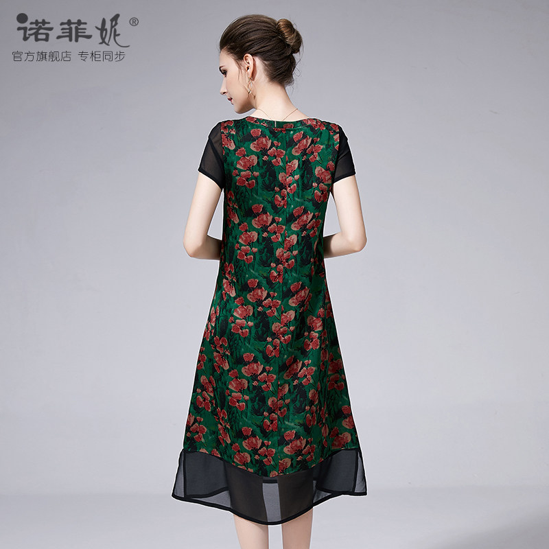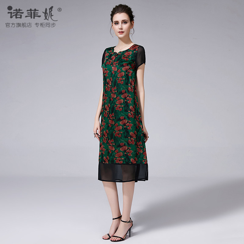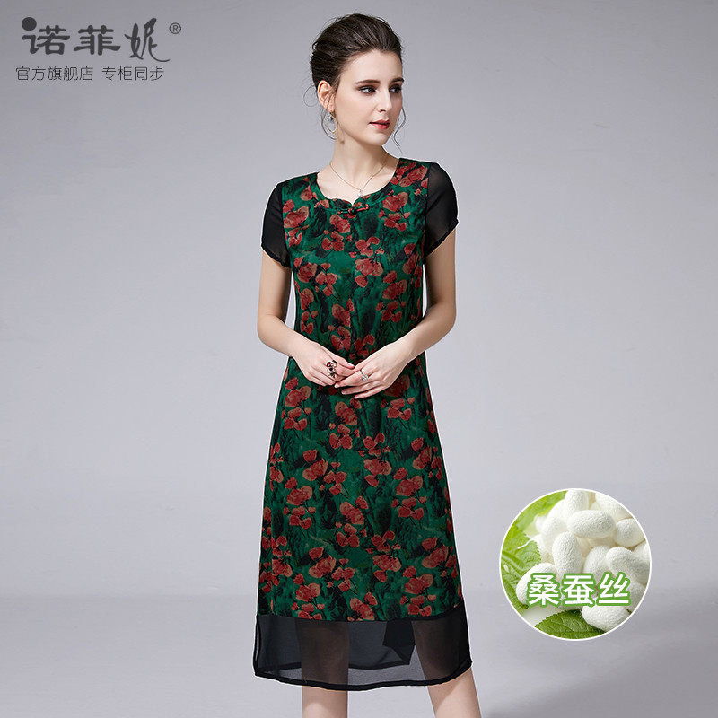 品牌专柜夏装新款正宗莨绸香云纱连衣裙直筒显瘦真丝短袖中长裙女