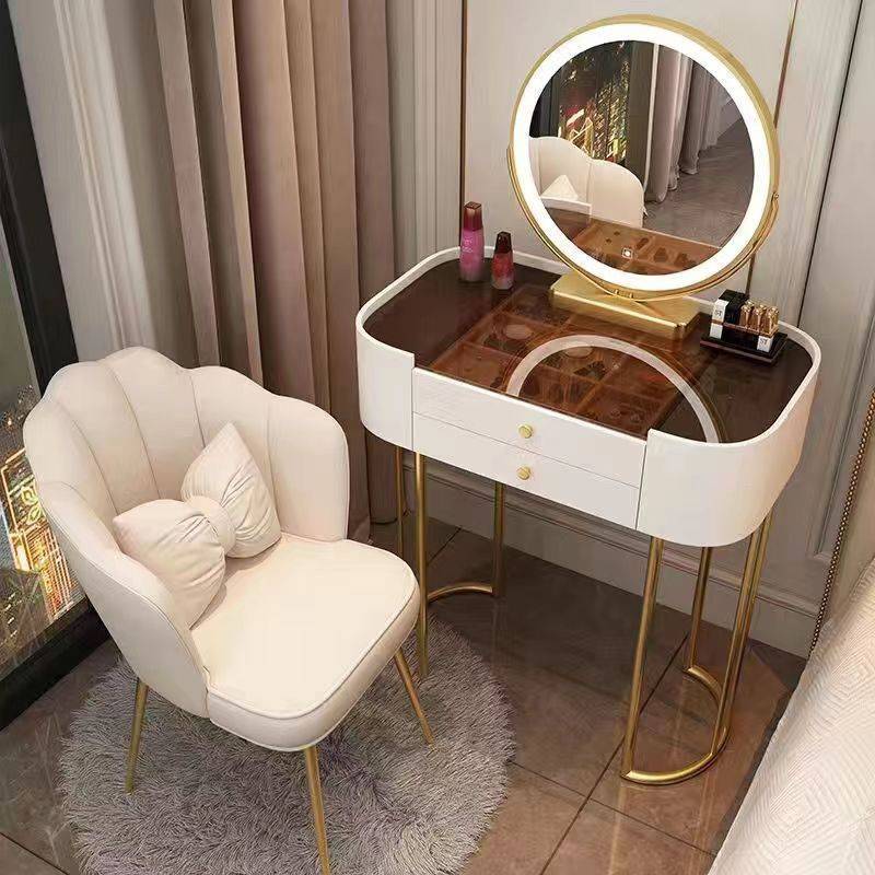 fLE轻奢小户型岩板梳妆台卧室现代简约透明桌面玻璃主卧床头化妆