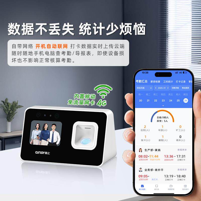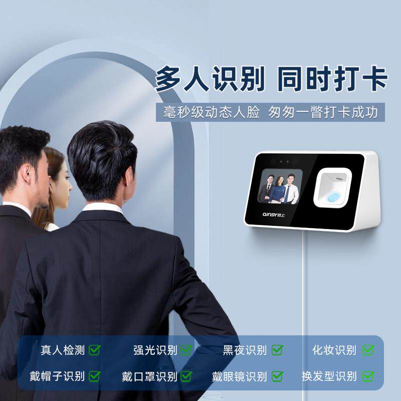 智能云考勤机人脸识别 多人脸指纹打卡一体机 QINSY勤上多功能免