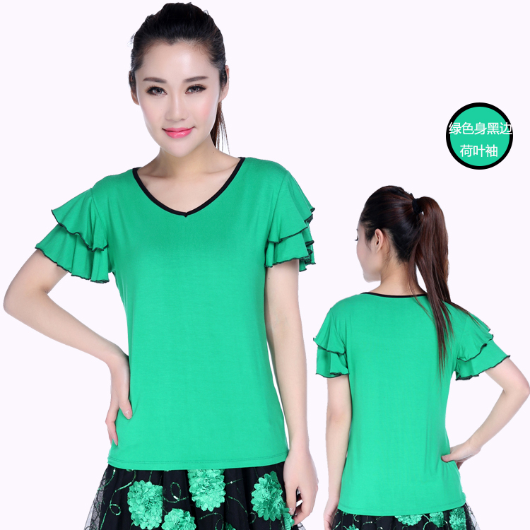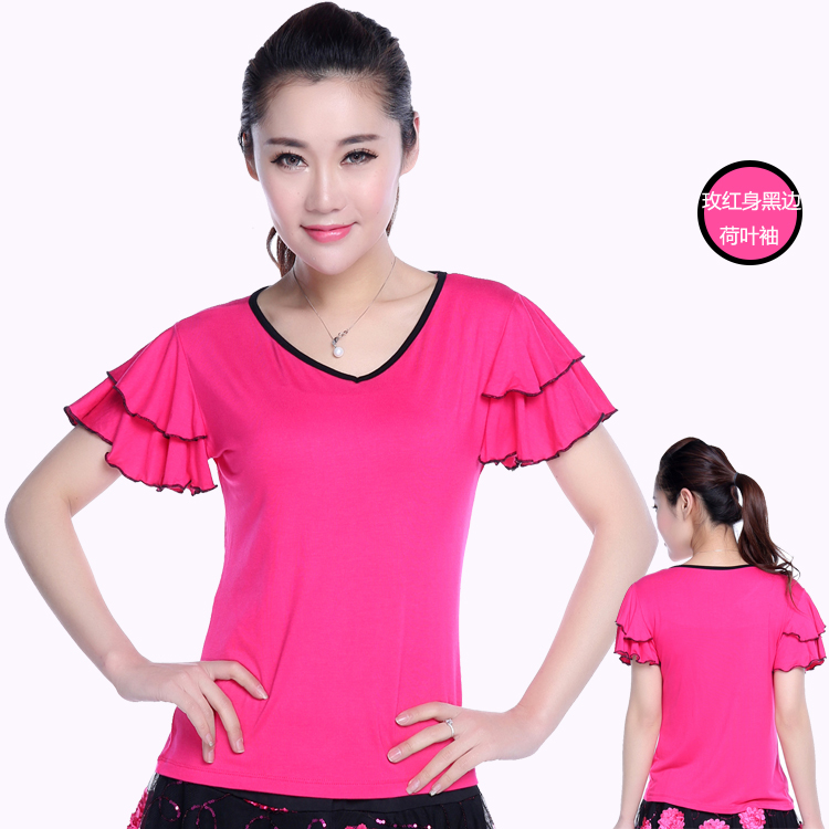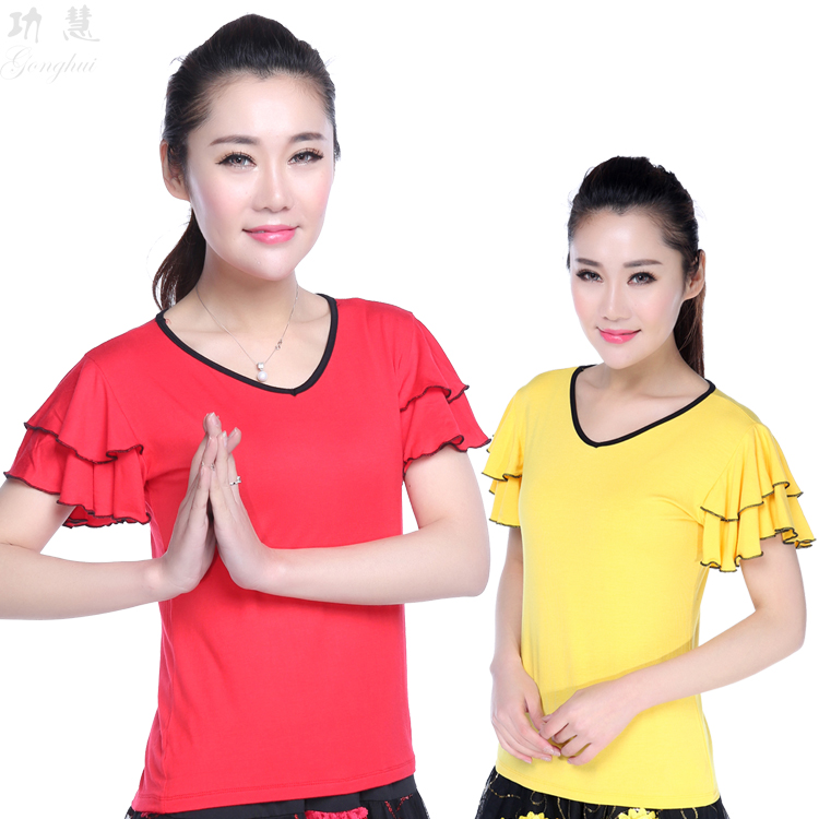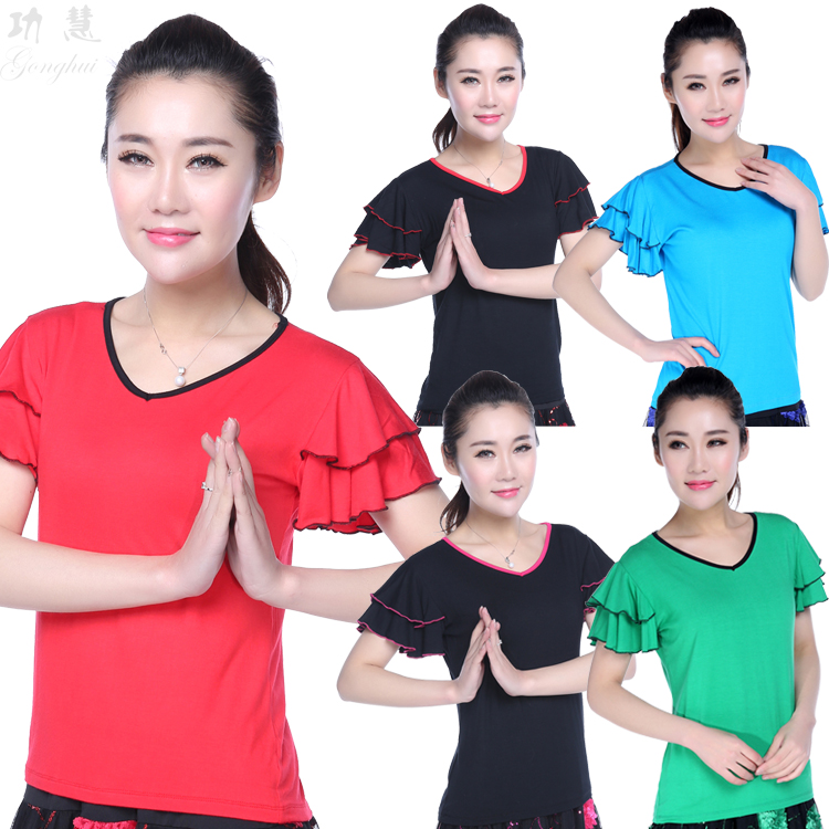 广场舞服装新款舞蹈服短袖上衣拉丁舞服装练功服健身服女特价包邮