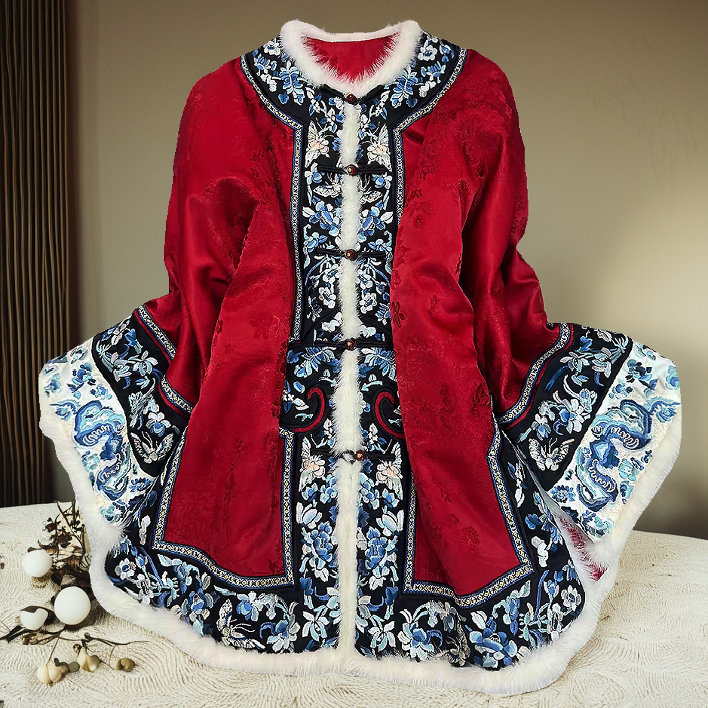 安娜滕新中式复古棉衣女冬季民族风重工刺绣醋酸提花水貂毛薄棉服