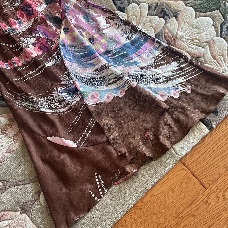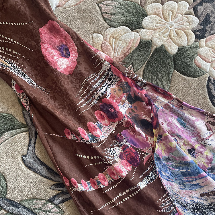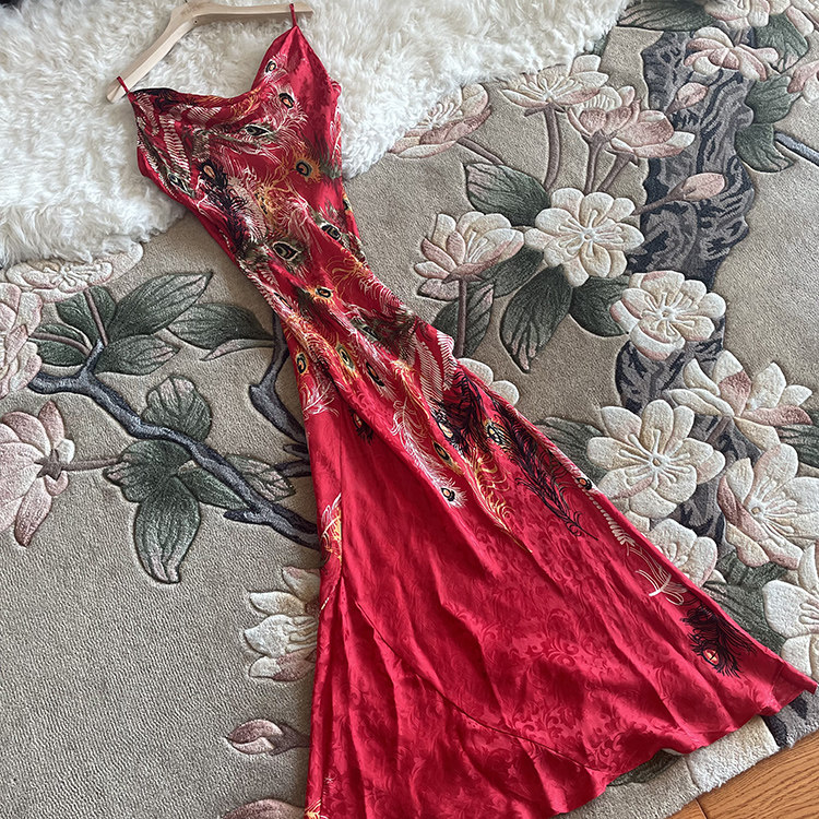 吊带连衣裙真丝缎A字长裙印花