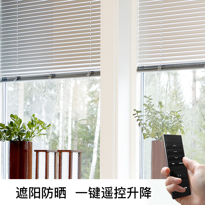 创明电动铝百叶窗帘智能办公室卫生间浴室窗帘防水遮光升降百叶帘