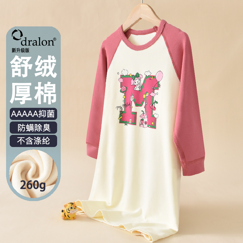 儿童纯棉保暖睡衣睡裙睡袍冬季a类加厚秋冬女童中大童全棉家居服