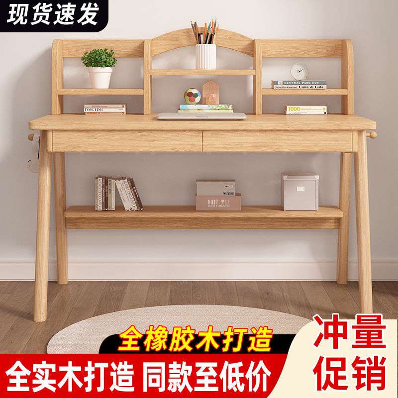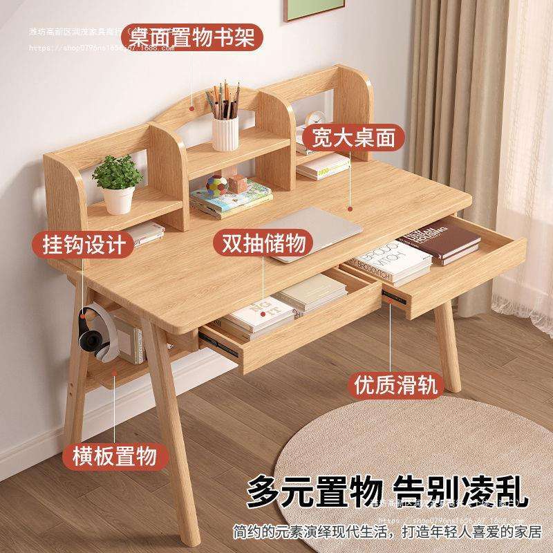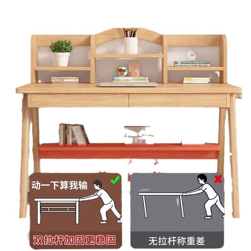 学习桌双人儿童书桌家用写字台初中生学生桌椅套装卧室多功能书架
