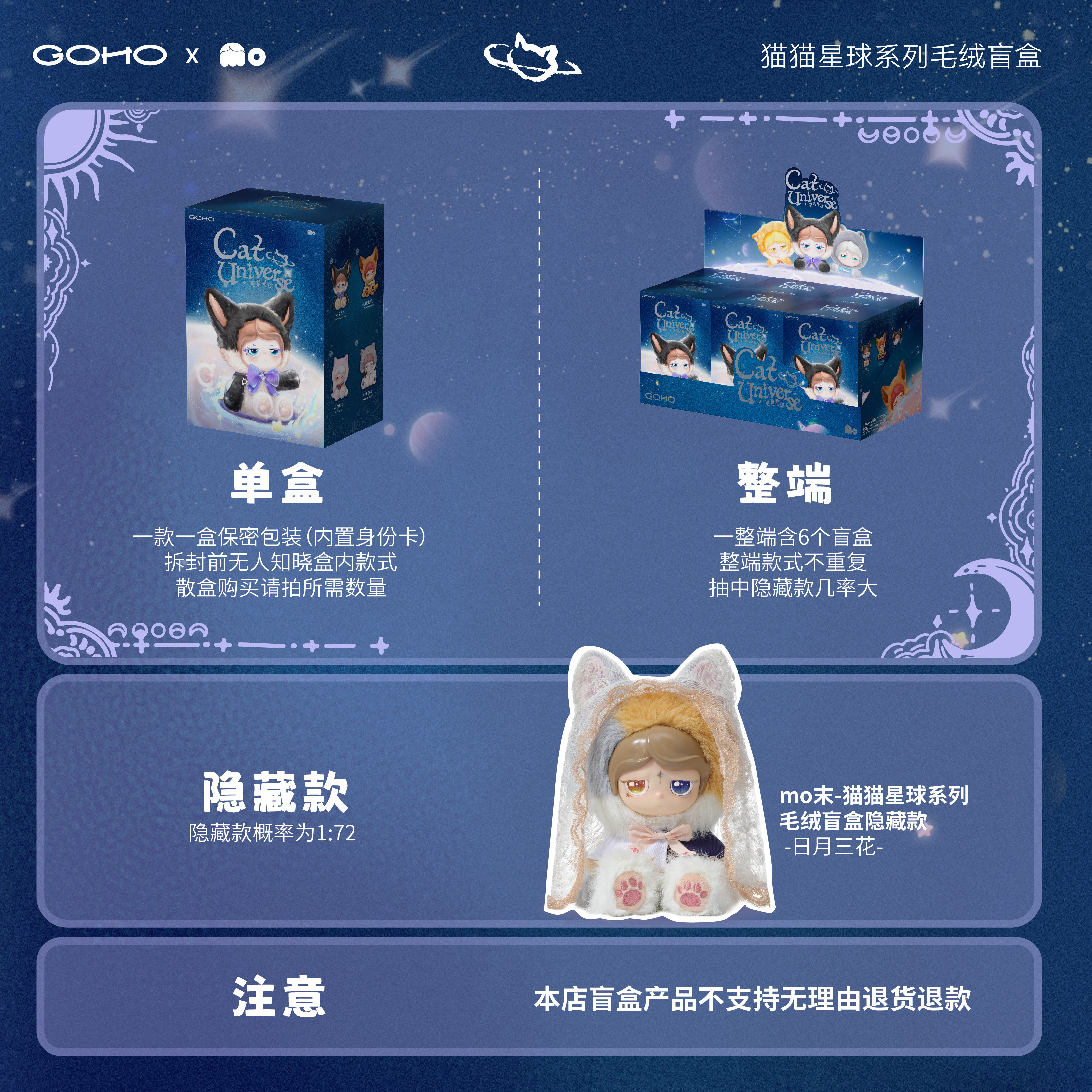 【明星同款】GOHO 末Mo-猫猫星球系列搪胶毛绒盲盒潮玩挂件礼物