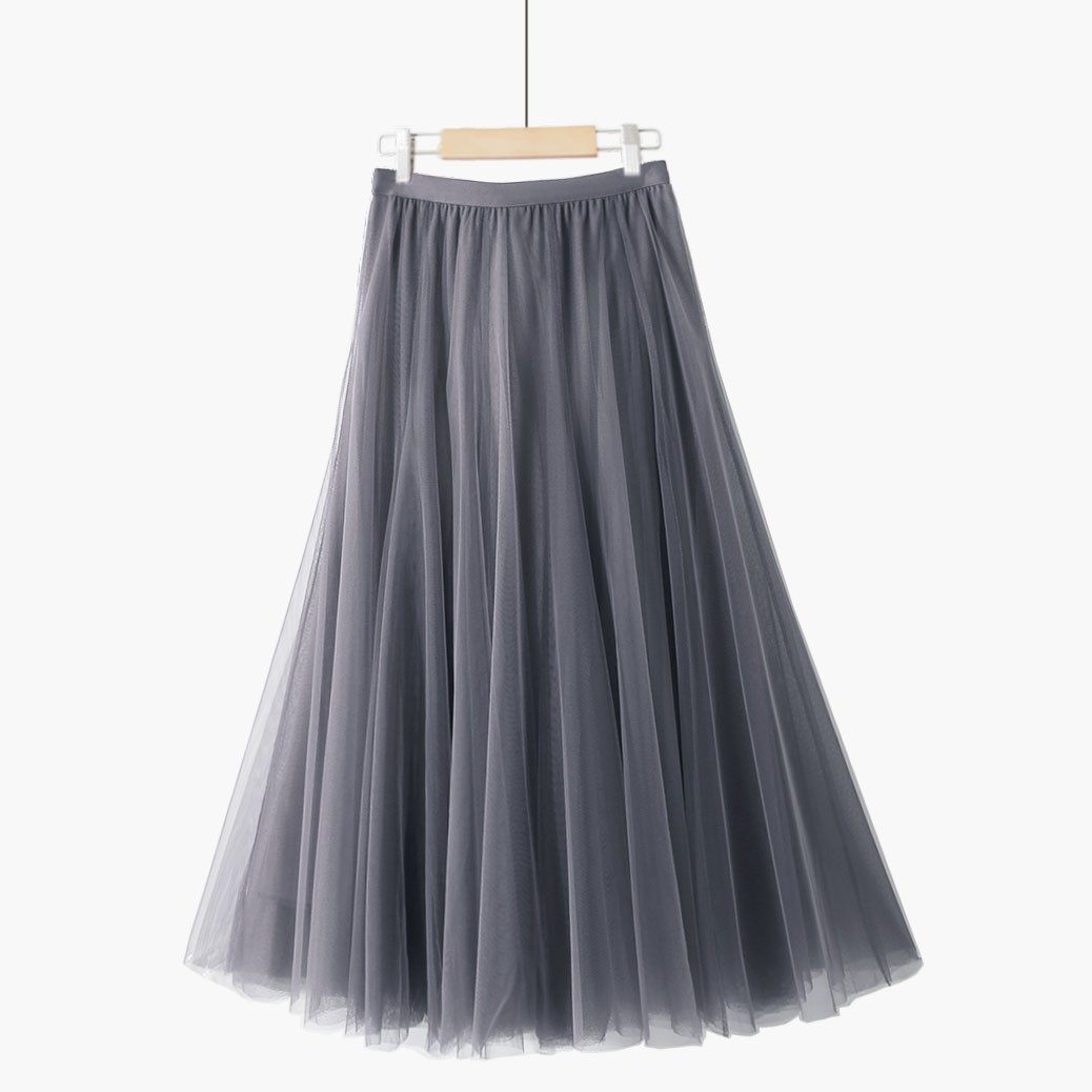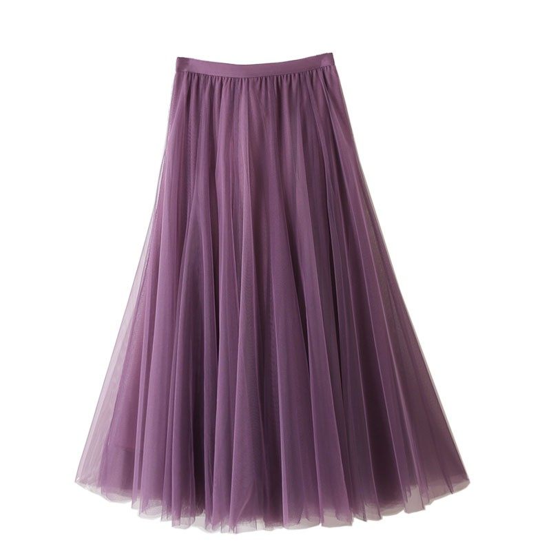 秋冬百搭显瘦纯复古蕾丝拼接超大裙摆百褶仙女中长款网纱裙半身裙