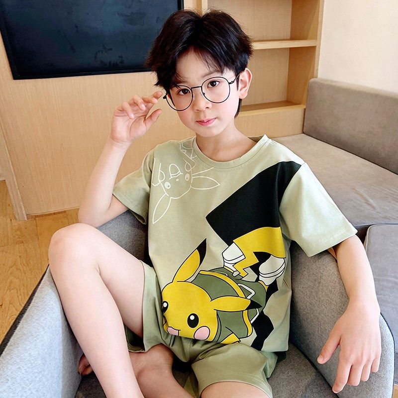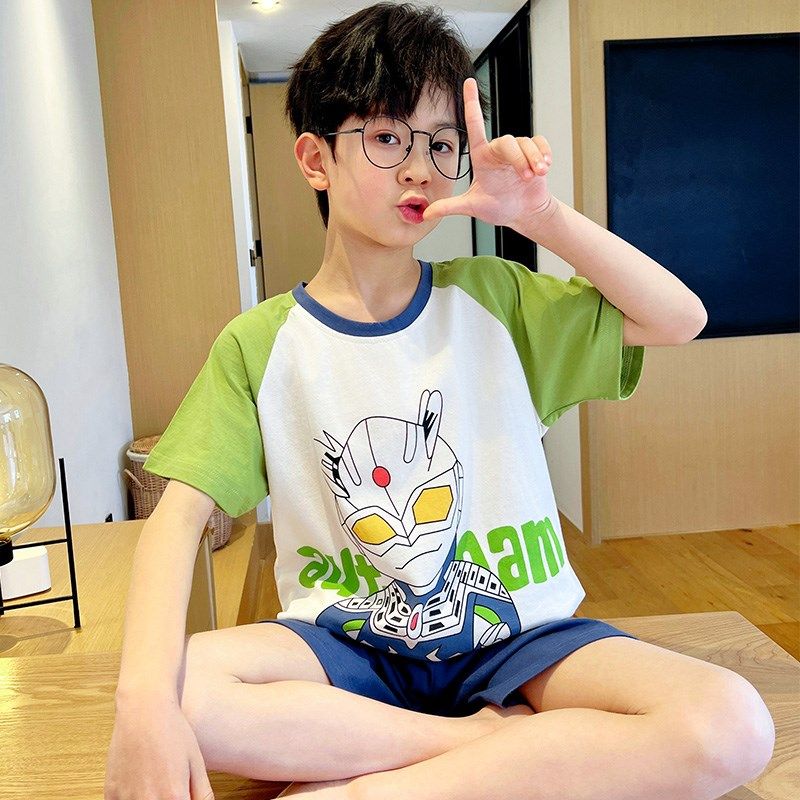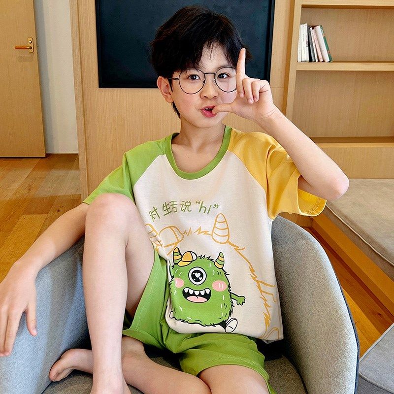 儿童睡衣男童夏季纯棉短袖套装2024新款男孩夏天中大童薄款家居服