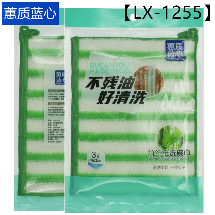 【1包之10包】蕙质蓝心LX-1255竹纤维抹布不沾油洗碗布双层三片装