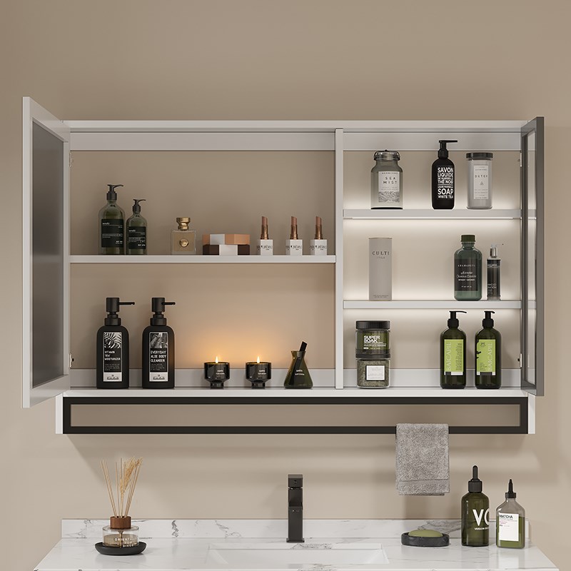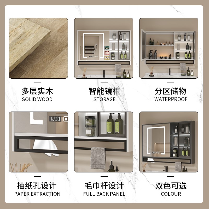 智能浴室镜柜实木挂墙式镜箱单独卫生H间收纳浴室镜子玻璃门层板