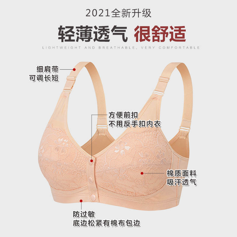 易脱前扣妈妈内衣无钢圈50岁中年舒适纯棉胸罩女中老年人薄文胸夏