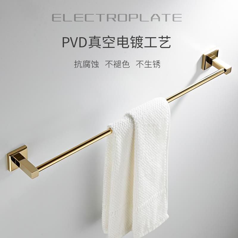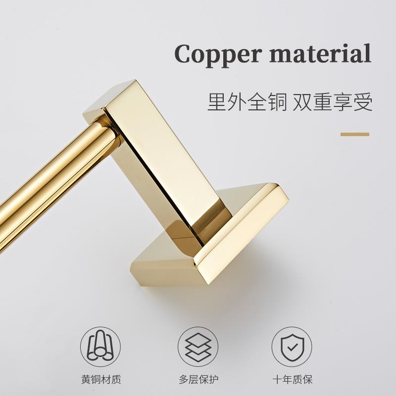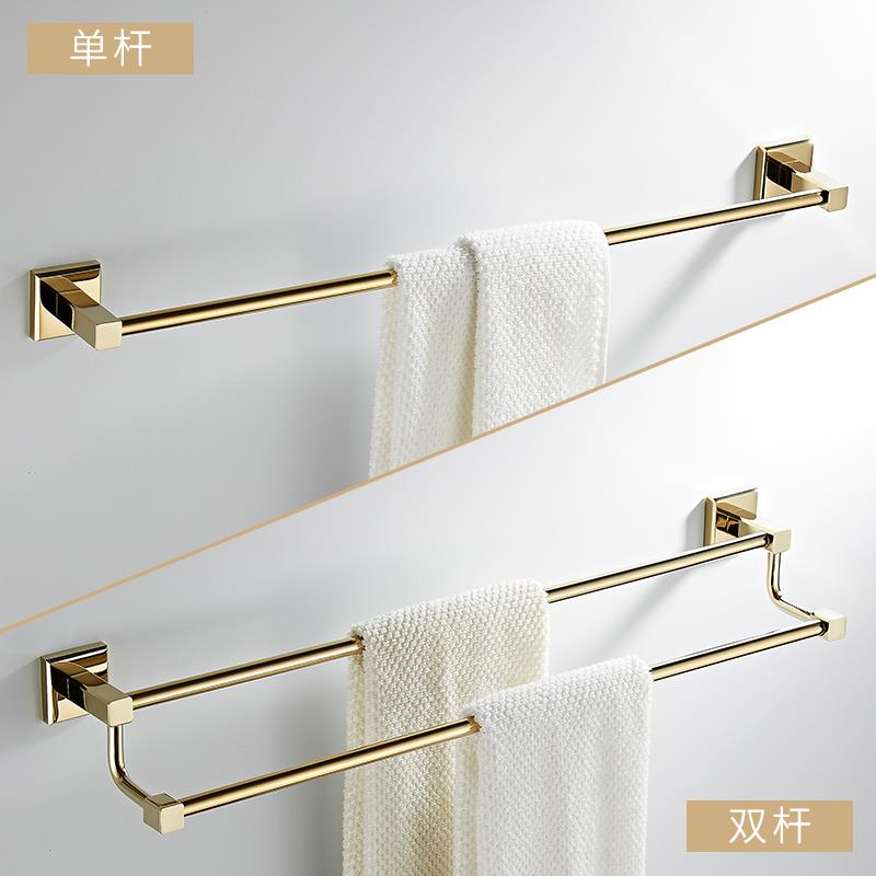 全铜单杆毛巾置物架卫生间免打孔金色浴室挂杆轻奢壁挂式五金挂件