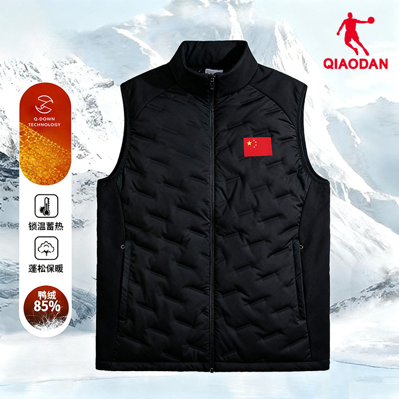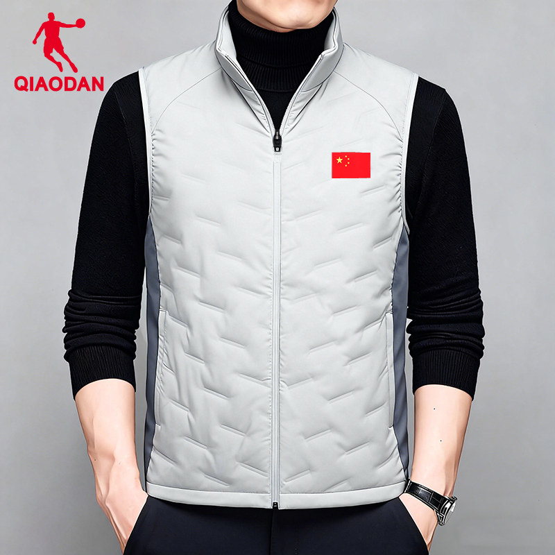 乔丹羽绒马甲男款2025冬季新款轻薄健身训练跑步坎肩外套运动马夹