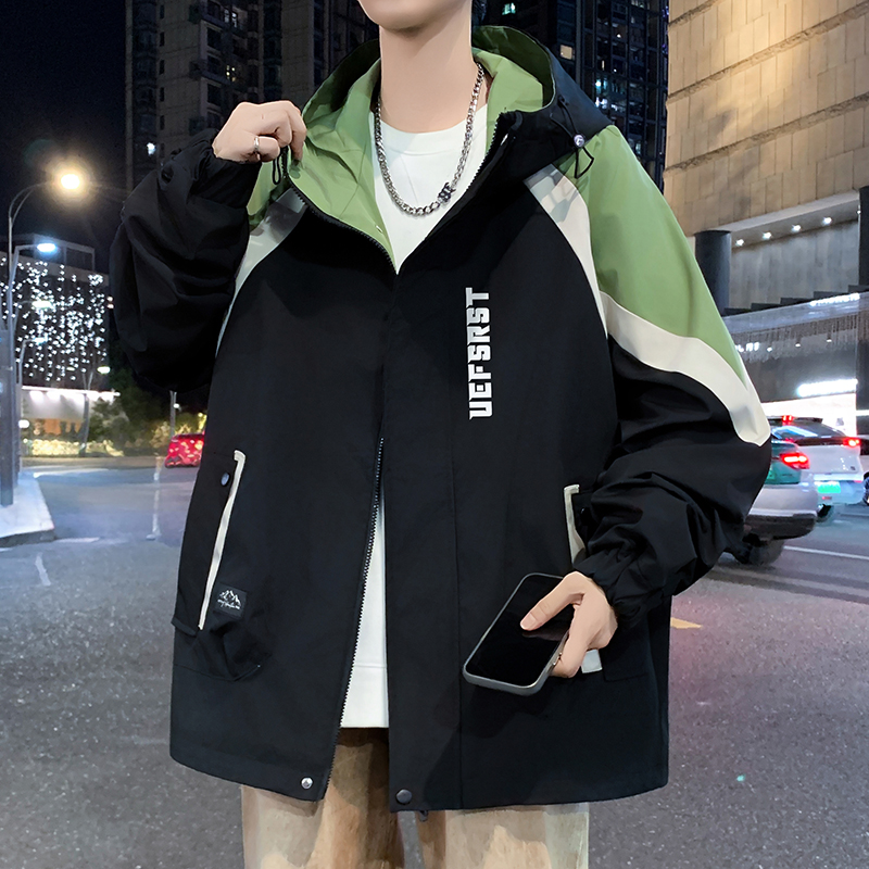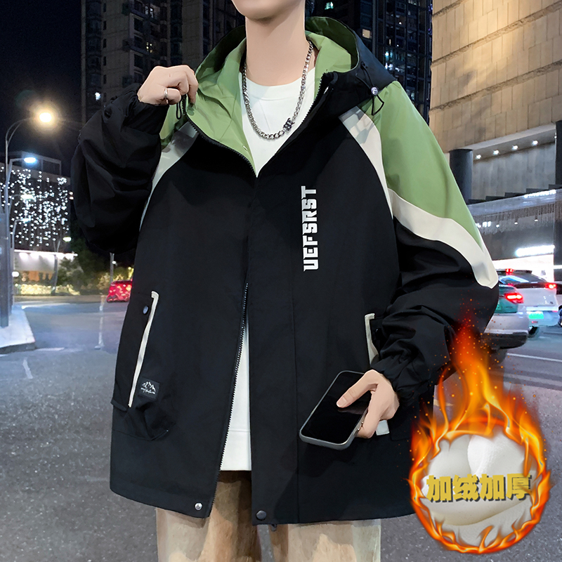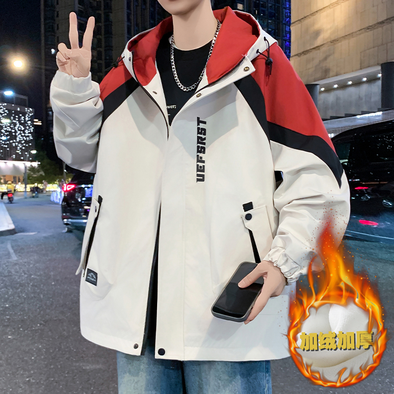 青少年连帽男士夹克2025秋冬季新款港风潮学生冲锋衣帅气百搭外套