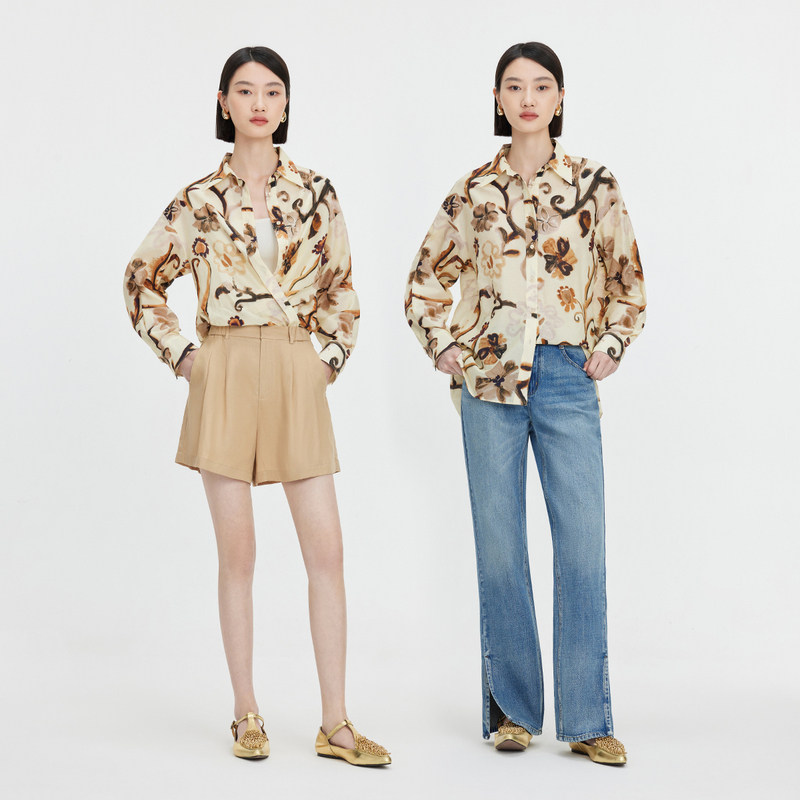 商场同款naivee纳薇春夏款新中式灼灼其华印花高级真丝衬衫上衣