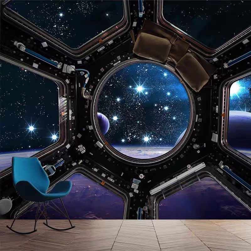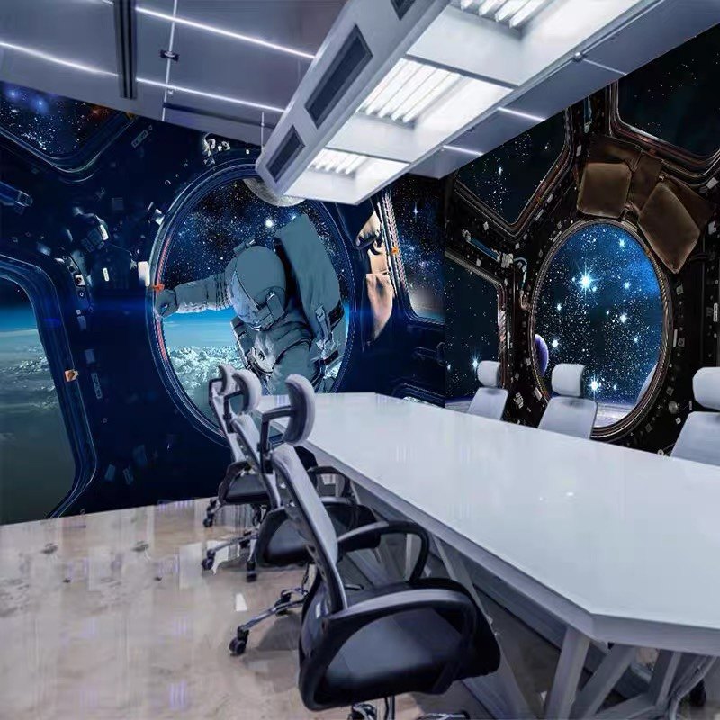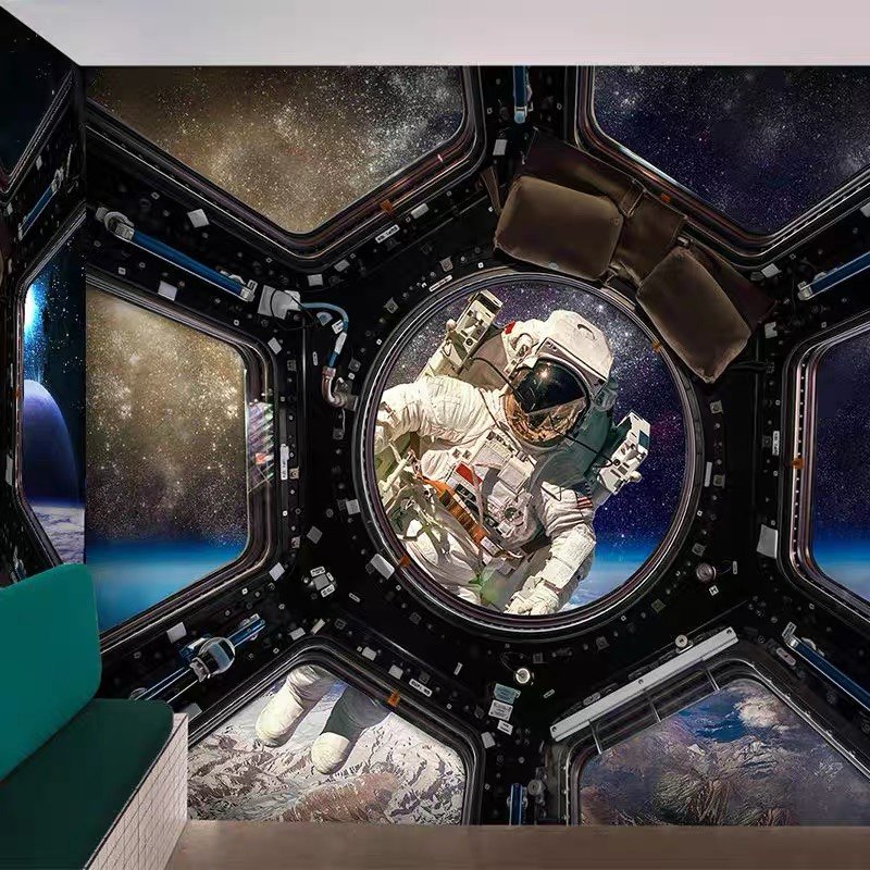 3d宇航员星空卧室吊顶壁纸宇宙星球太空舱科技馆培训教室墙纸壁布