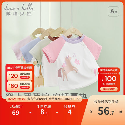 戴维贝拉女童凉感T恤男童短袖抗菌打底衫2025夏装新款儿童上衣