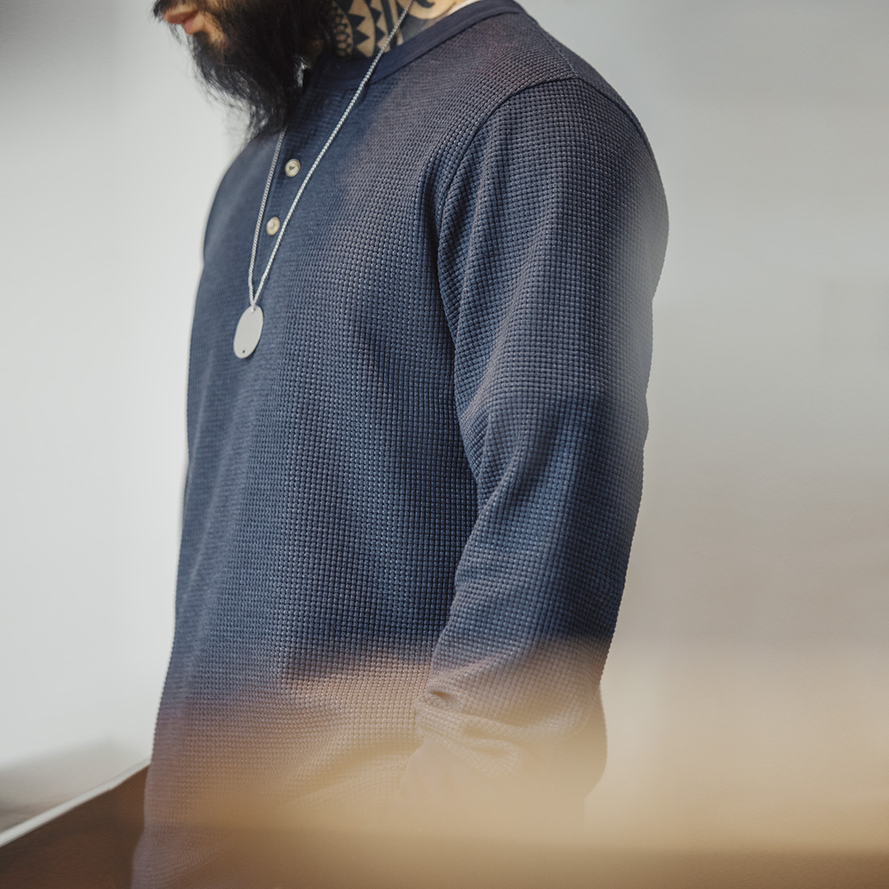 马登工装美式复古华夫格亨利衫